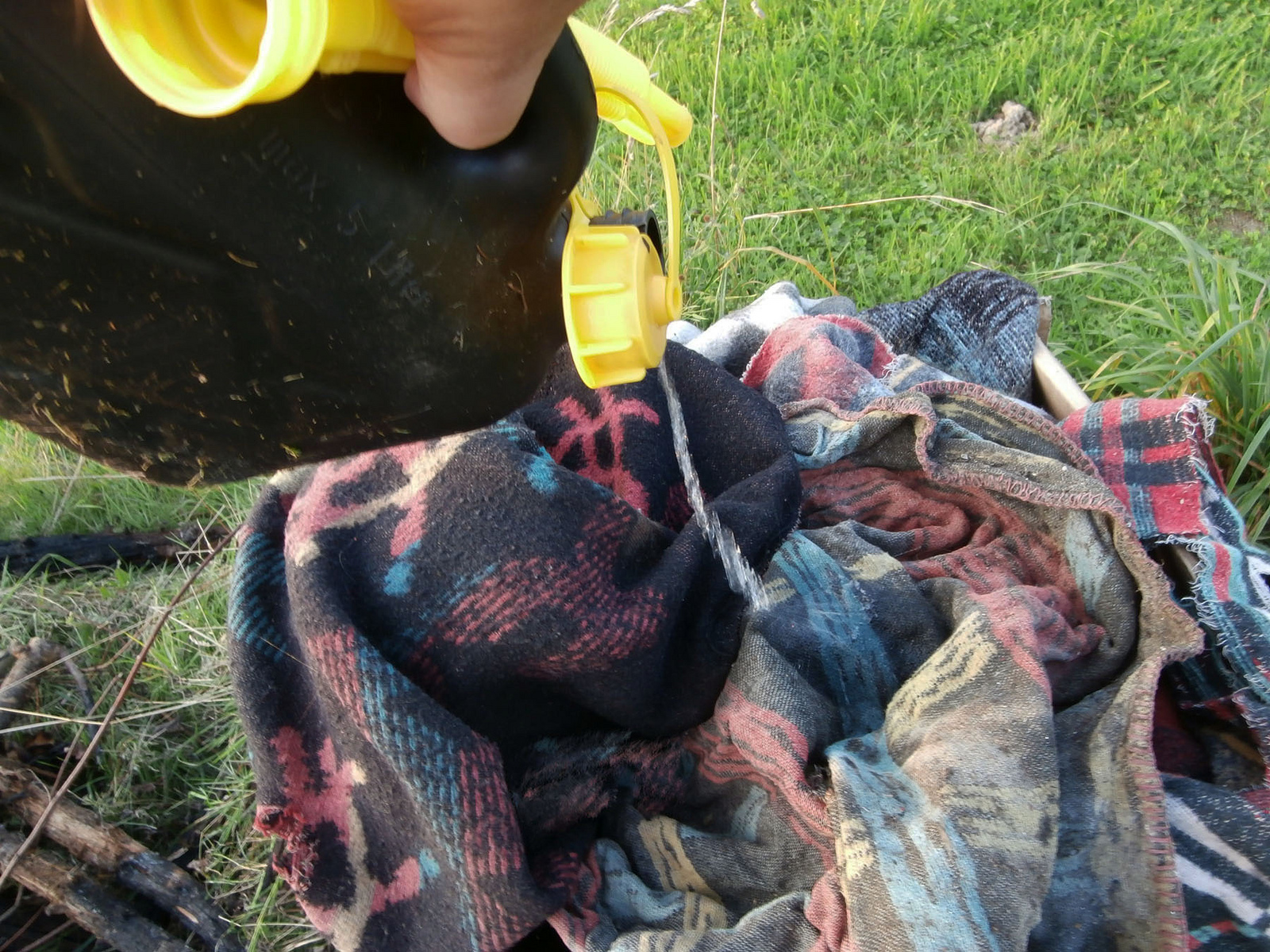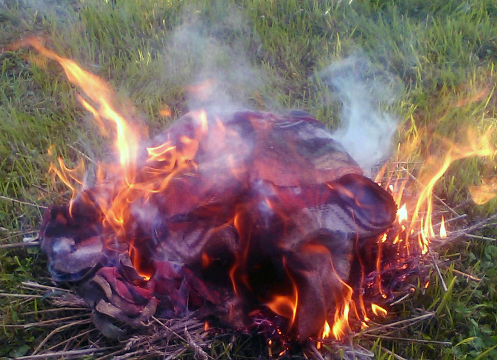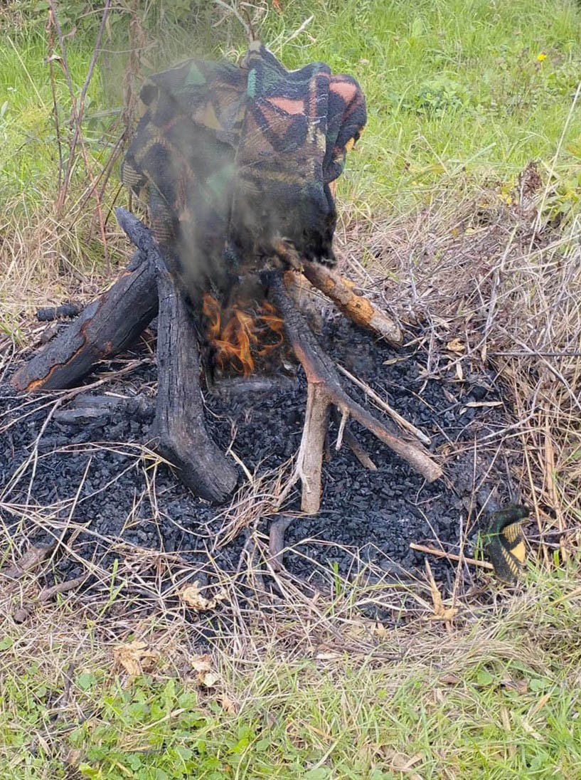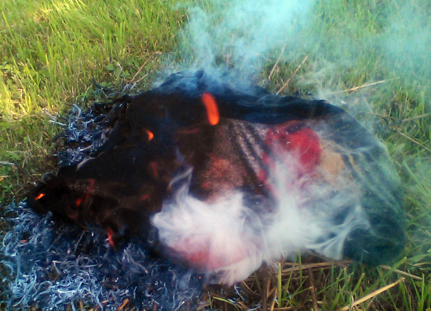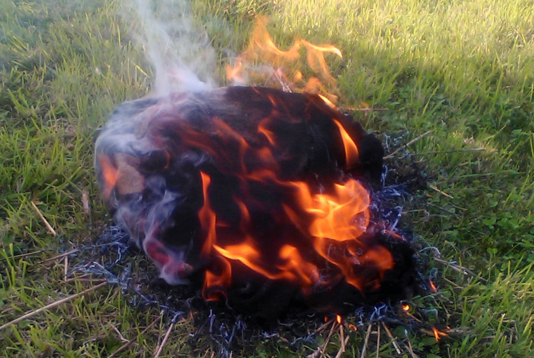 Die Decken sind beide noch nass und brennen so nicht. Haben halt draussen gelegen.