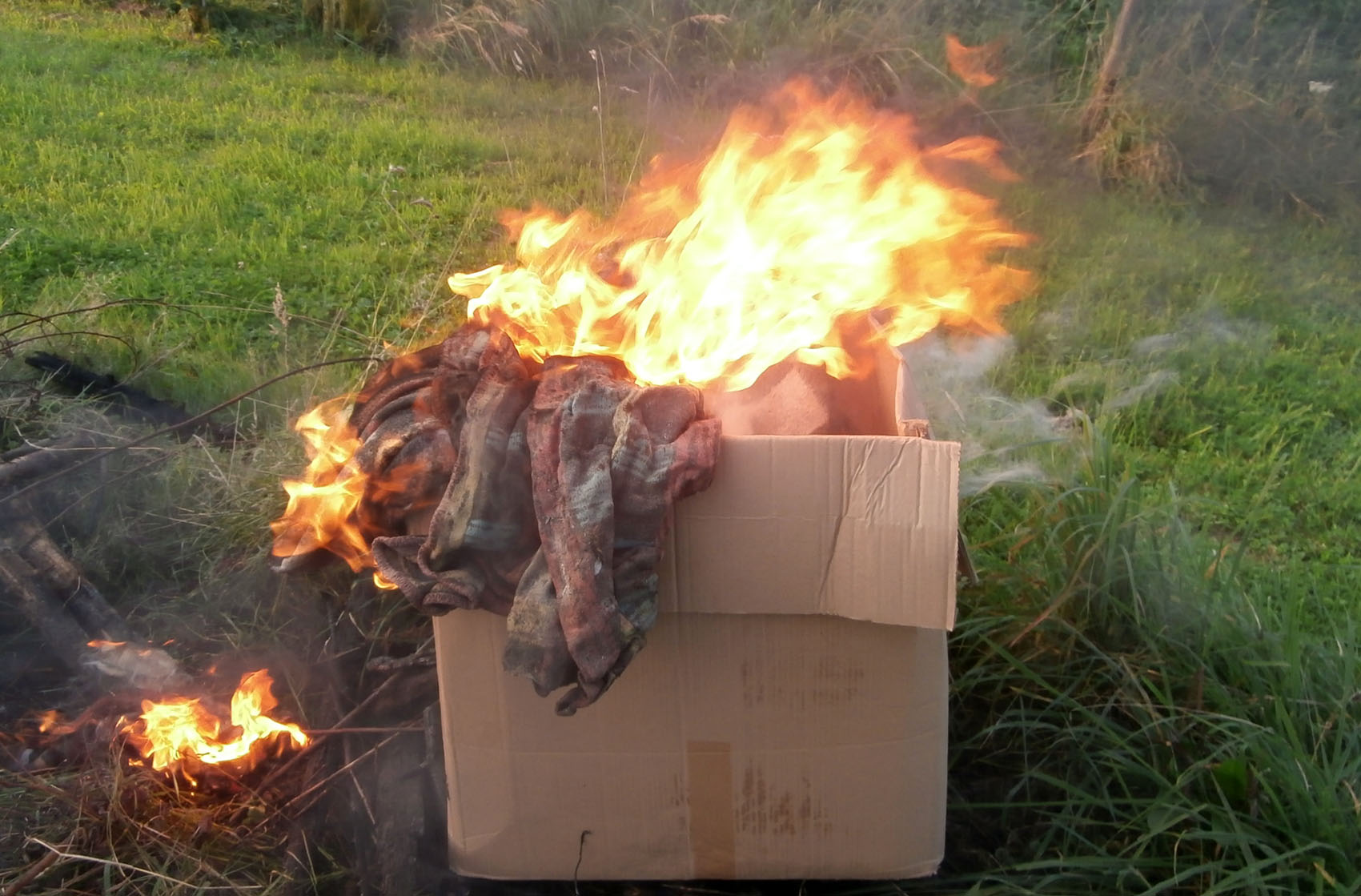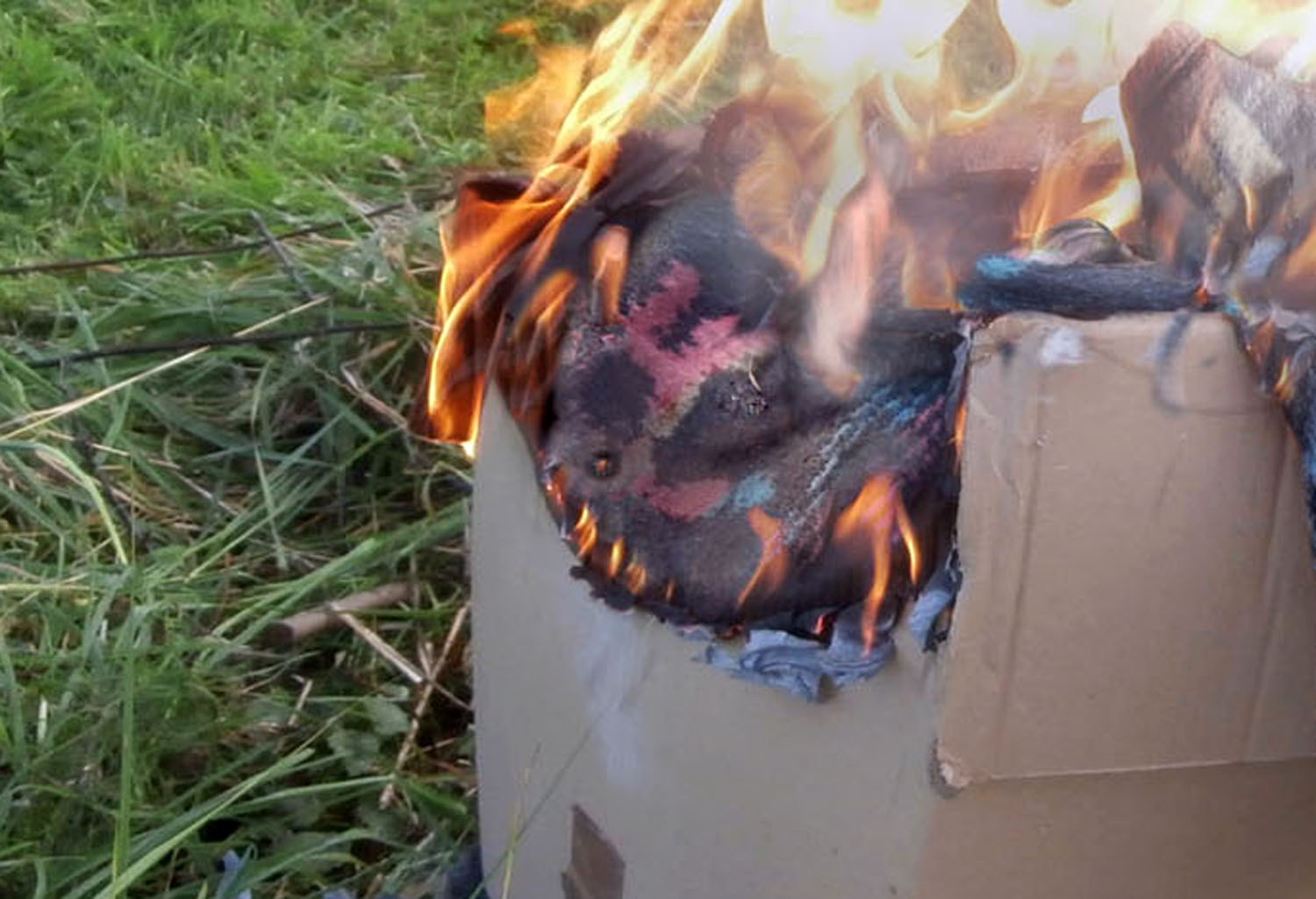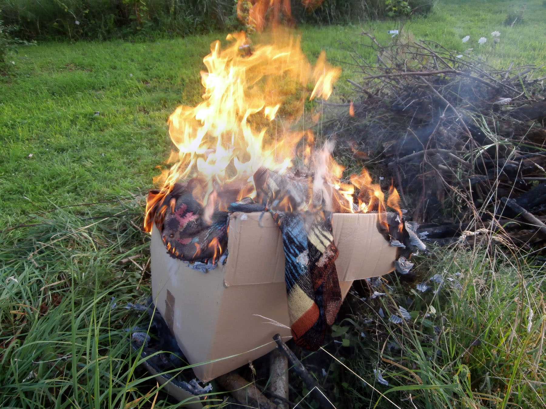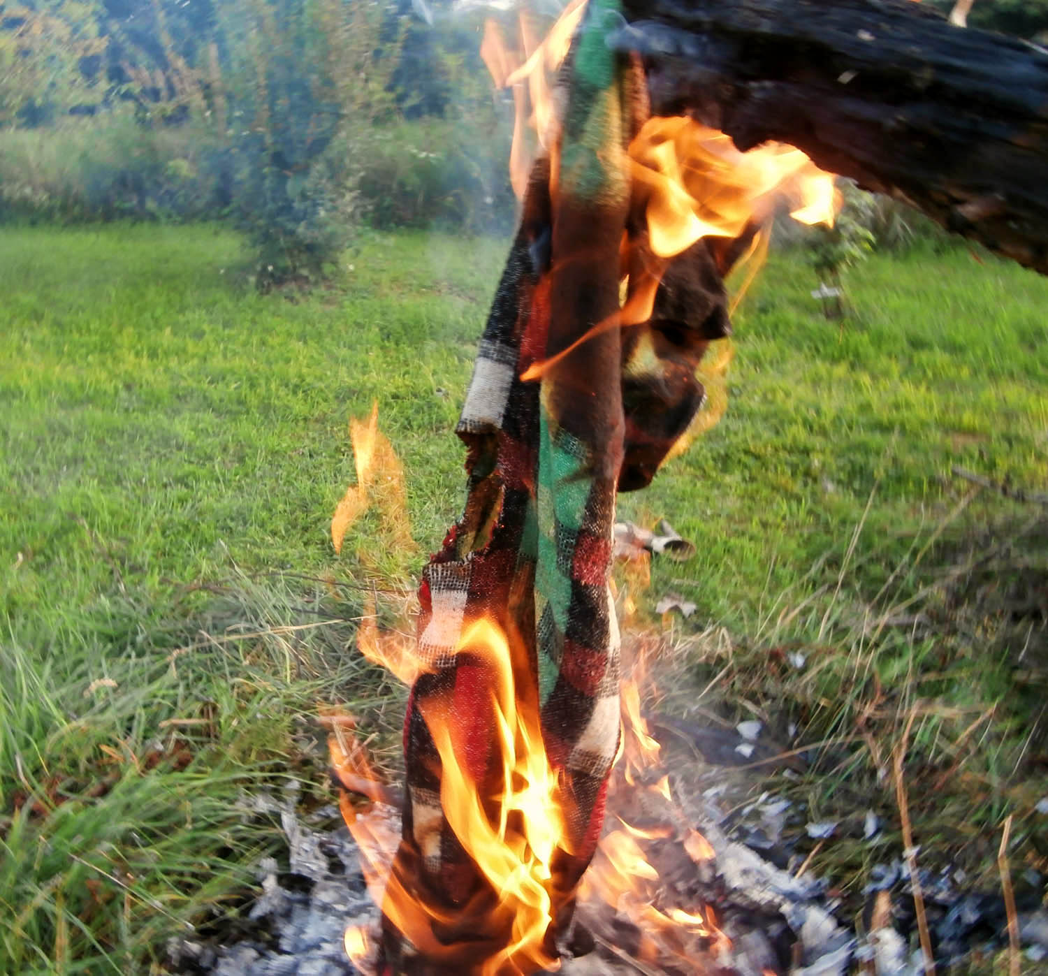 Die Decken sind beide noch nass und brennen so nicht. Haben halt draussen gelegen.