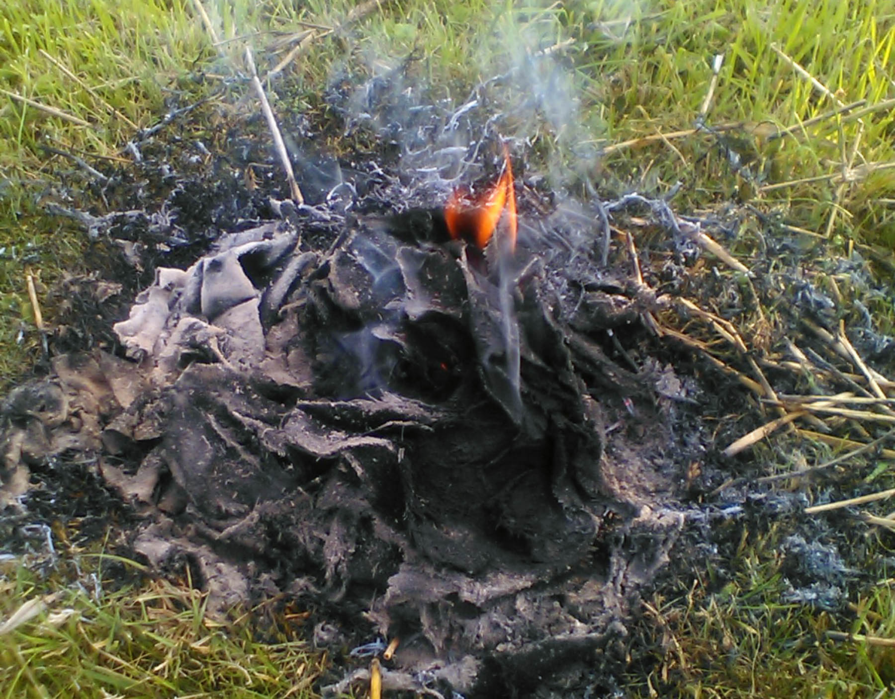 So, nachdem sich niemand anders mit der Decke beschäftigen wollte, geht sie nun, nachdem sie über einen Monat draussen gelegen hat, in Flammen auf. Stinkt und qualmt aber immer noch ordentlich