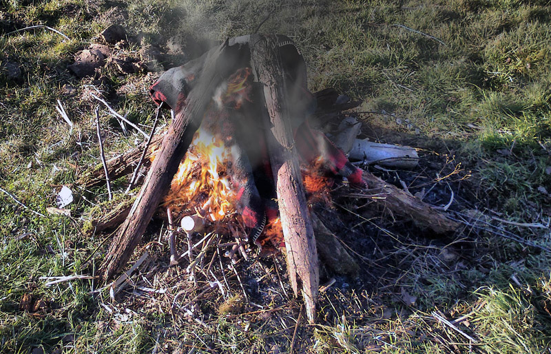 Das wäre bestimmt noch mal ein schönes Feuerchen. Ich muß die Decken aber erst mal trocknen. Haben jetzt wochenlang draussen im Regen gelegen. Die brennen sonst überhaupt nicht
