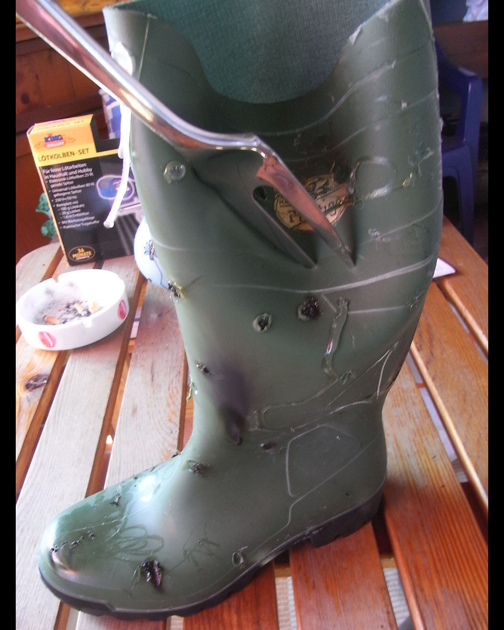 Welche Gummistiefelmodelle habt Ihr schon vernichtet? Und welche Methode habt Ihr angewandt.