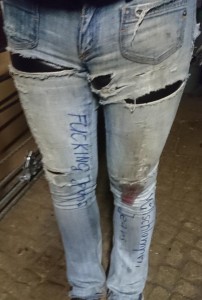 Entweder hat jemand hier nachgeholfen, oder die Kunstlederhosen sind doch nicht so stabil, wie man glaubt. Aber schön zum ansehen!!