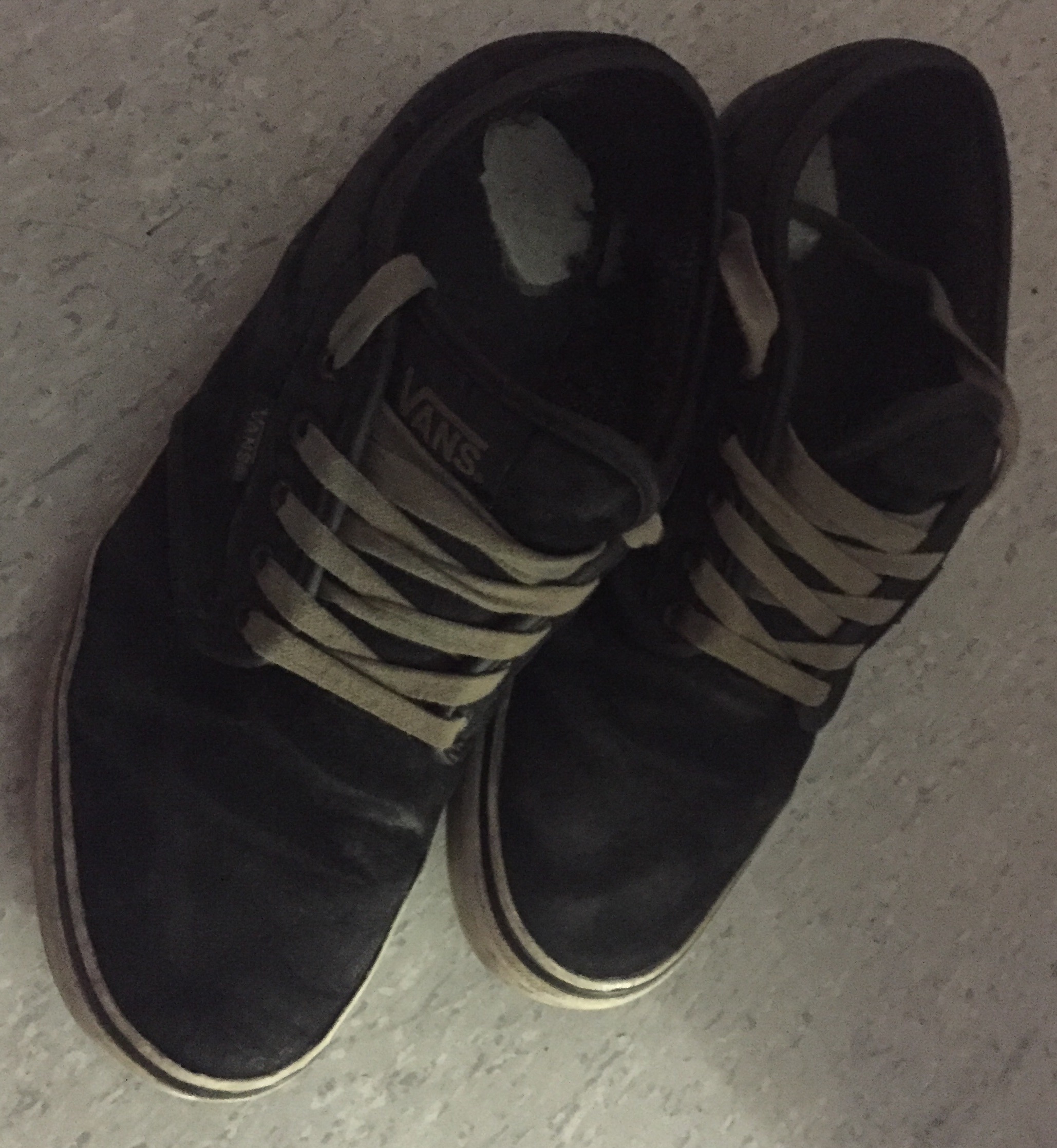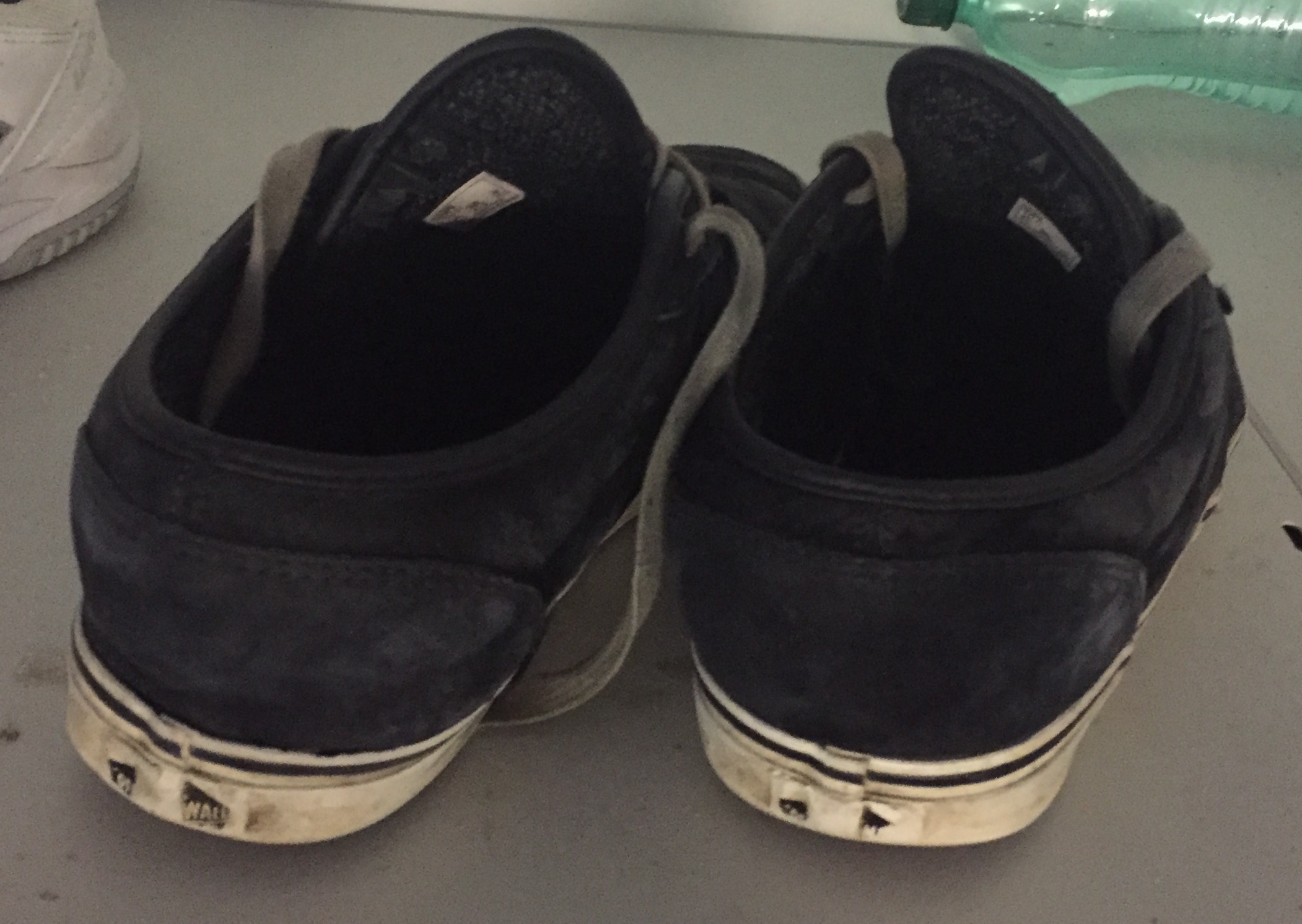 Mein Mitschüler und Sitznachbar hat ganz geile fertige Vans, die er häufig in der Schule trägt. Ich weiß allerdings nicht, wie lange es dauert, bis die Schuhe in den Müll wandern.