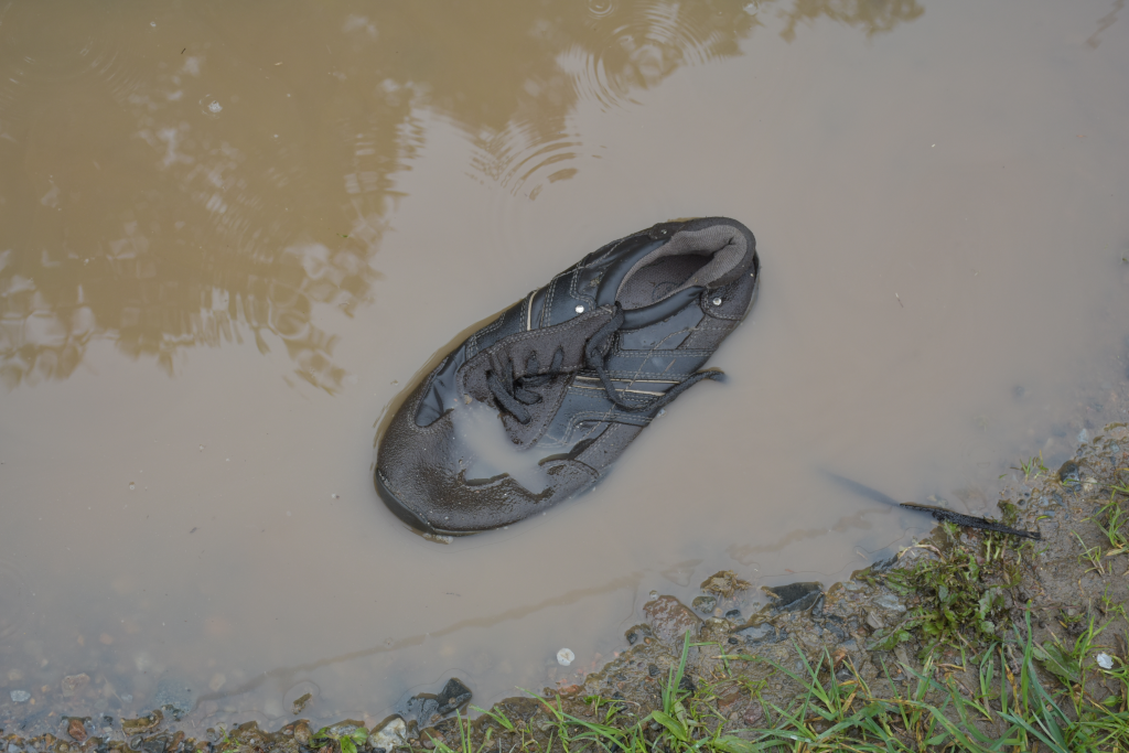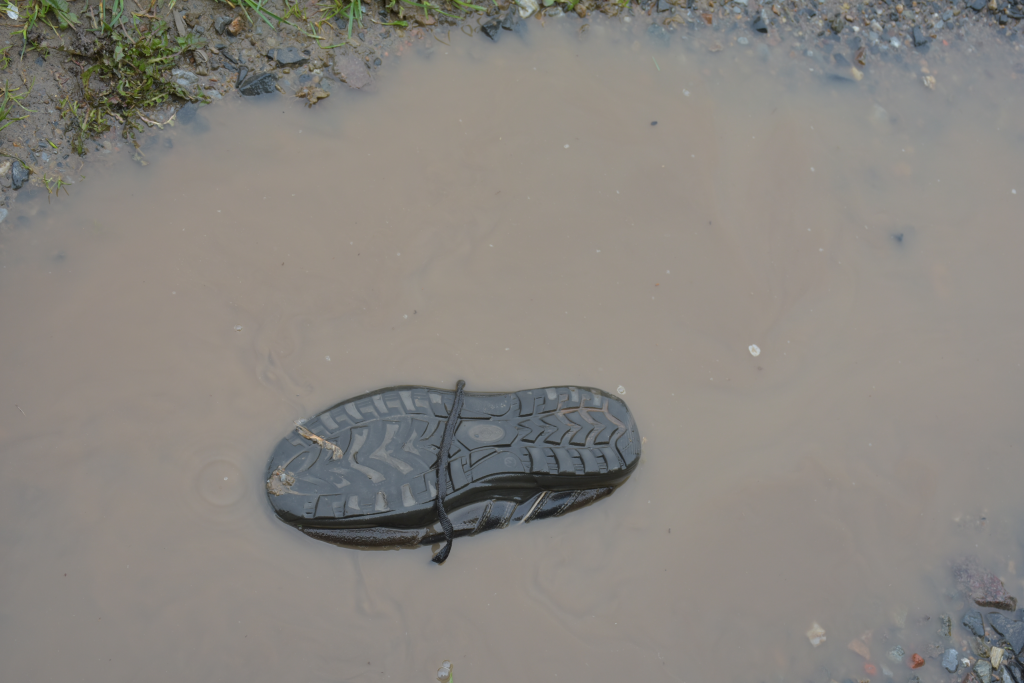 Auf einem Zufahrtsweg sah ich etwas "Verdächtiges" in einer Pfütze liegen,die Neugier packte mich,also hin und habe mir das genauer angeguckt,es handelte sich um einen abgelatschten Memphis One Schuh Gr.42 ,vom Partner leider weit und breit keine Spur....