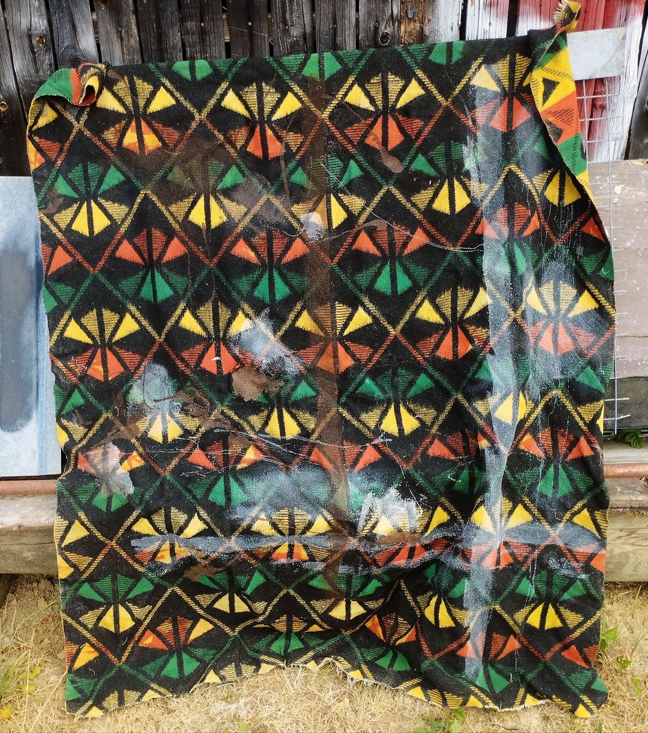 Die alte schwarz rot gestreifte Decke steht nicht mehr zur Verfügung (es sei denn, es holt sie wieder einer aus dem Container raus)