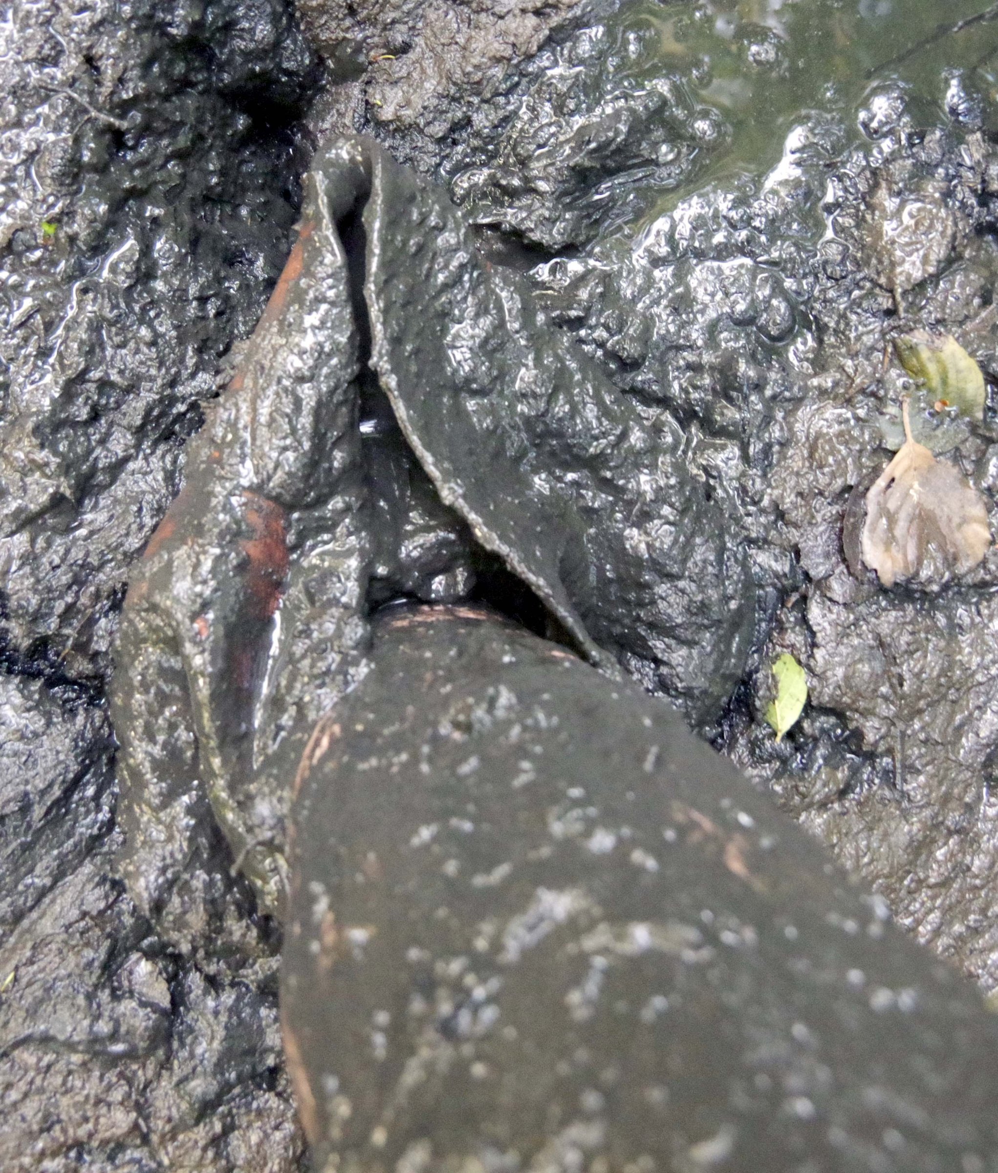 Aufgeweichte Lederlappen, triefend nass.