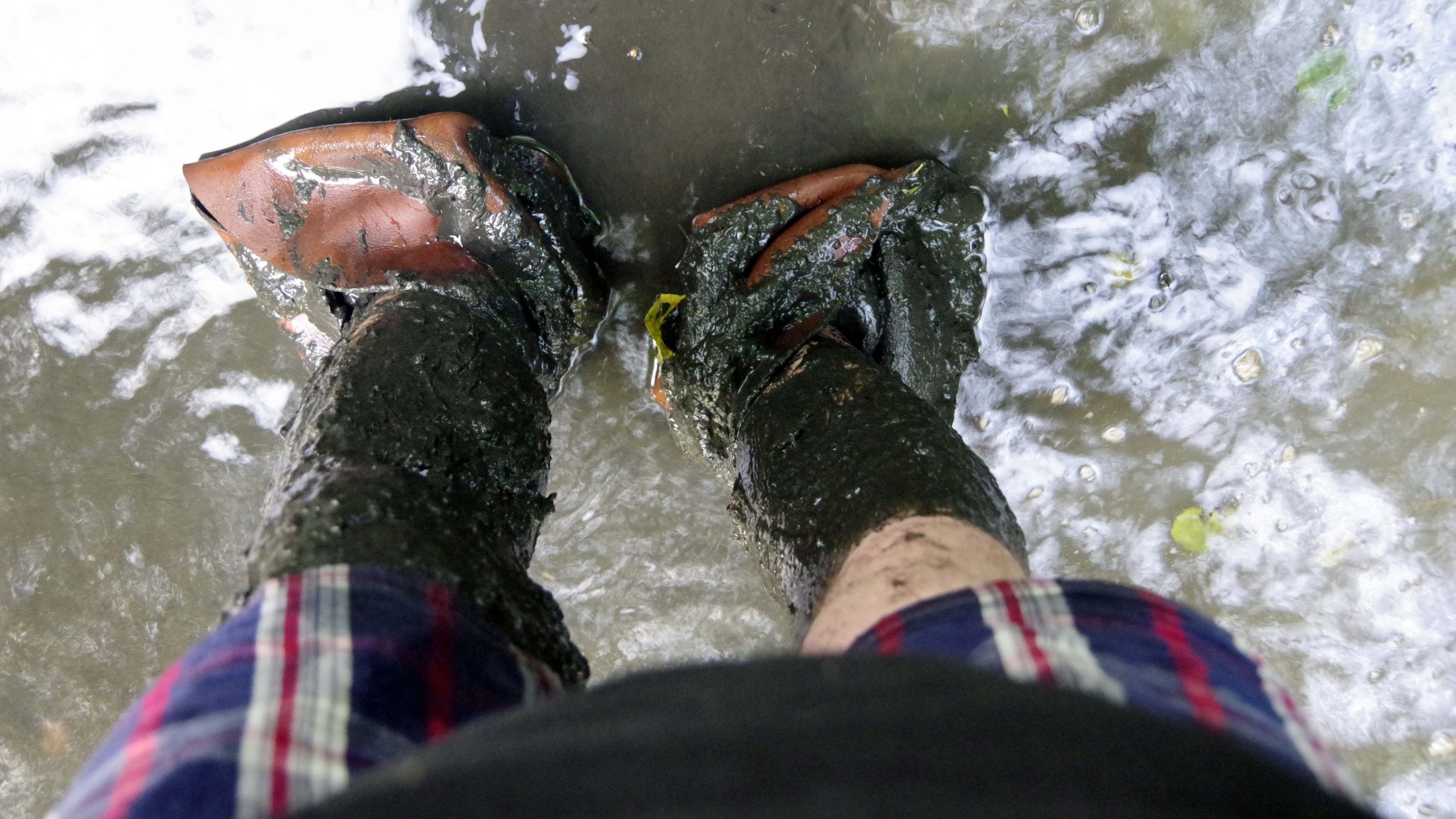 Langsam verwandeln sich die Stiefel zu schlammigen lederlappen