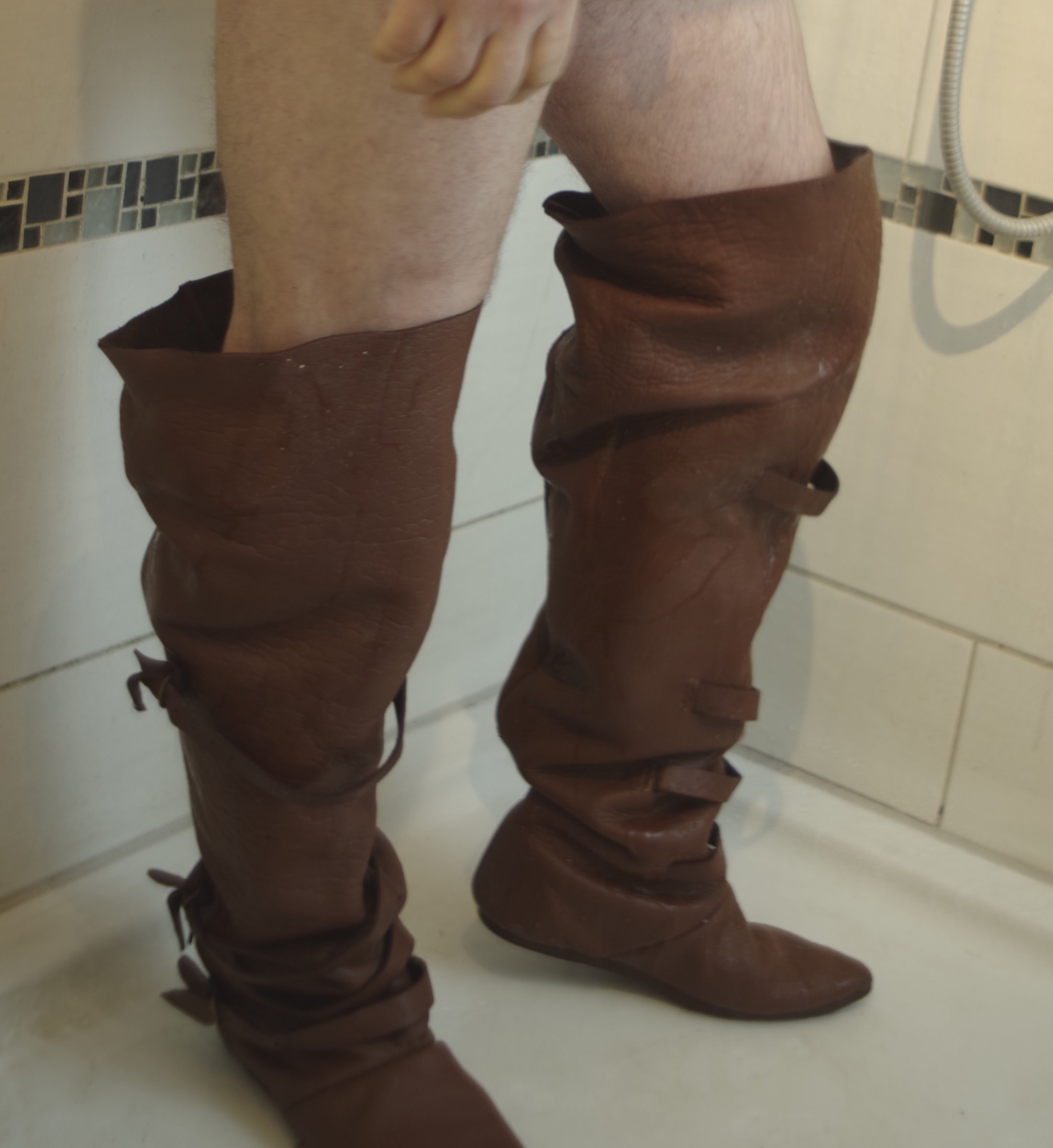 Schau wie die hohen Schäfte als nasse Lederlappen tief herunter rutschen.
