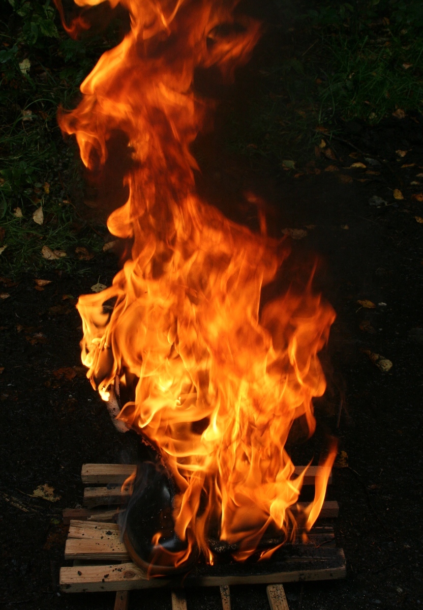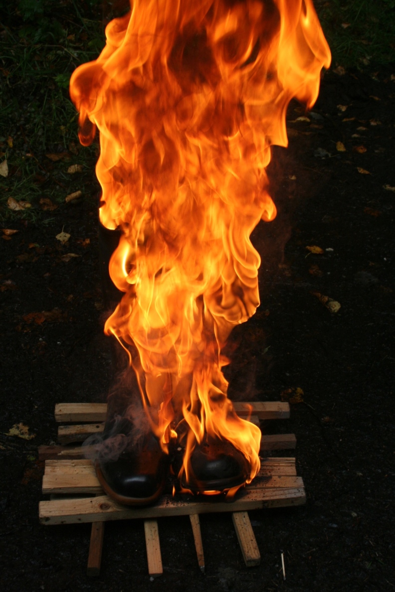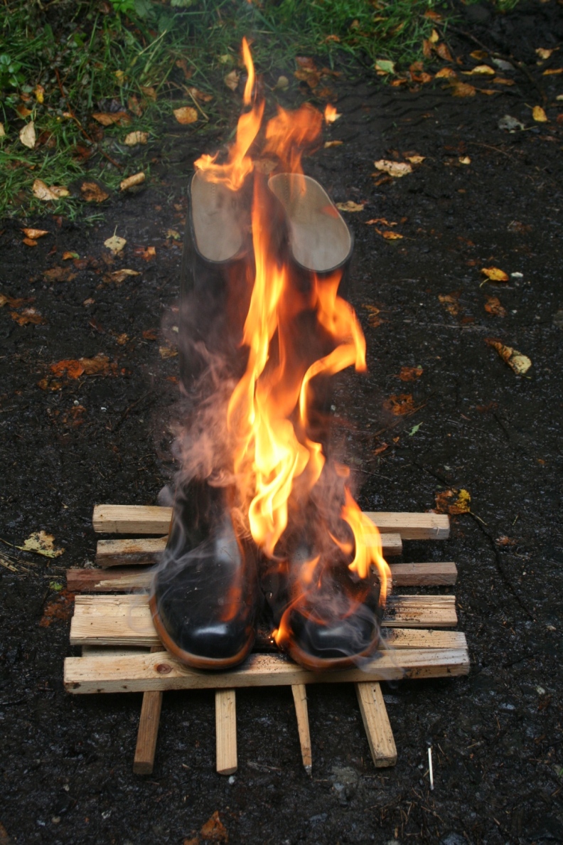die stiefel da waren aus echtem gummi, das brennt relativ gut und relativ heiss.