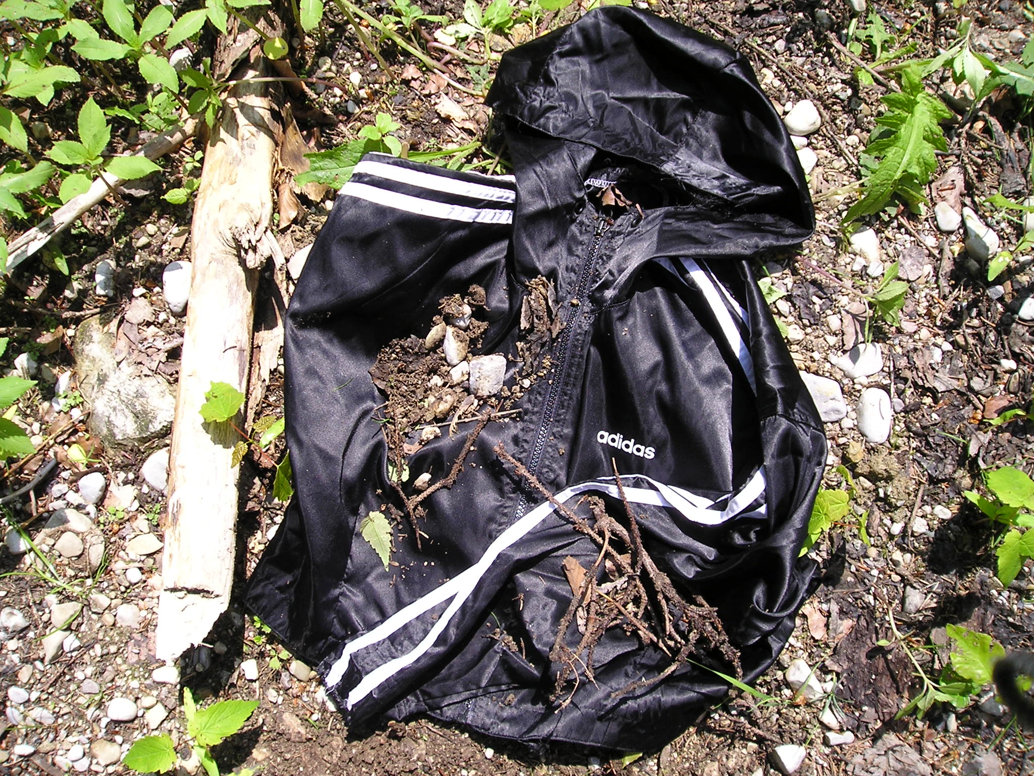 da dürften eigentlich keine Flecken drauf gewesen sein, die ist ja wirklich im Pool kaputt gegangen, und sie war wirklich von meiner Frau. Aber auch meine Sachen saue nur ganz selten mal auf diese Weise ein...
