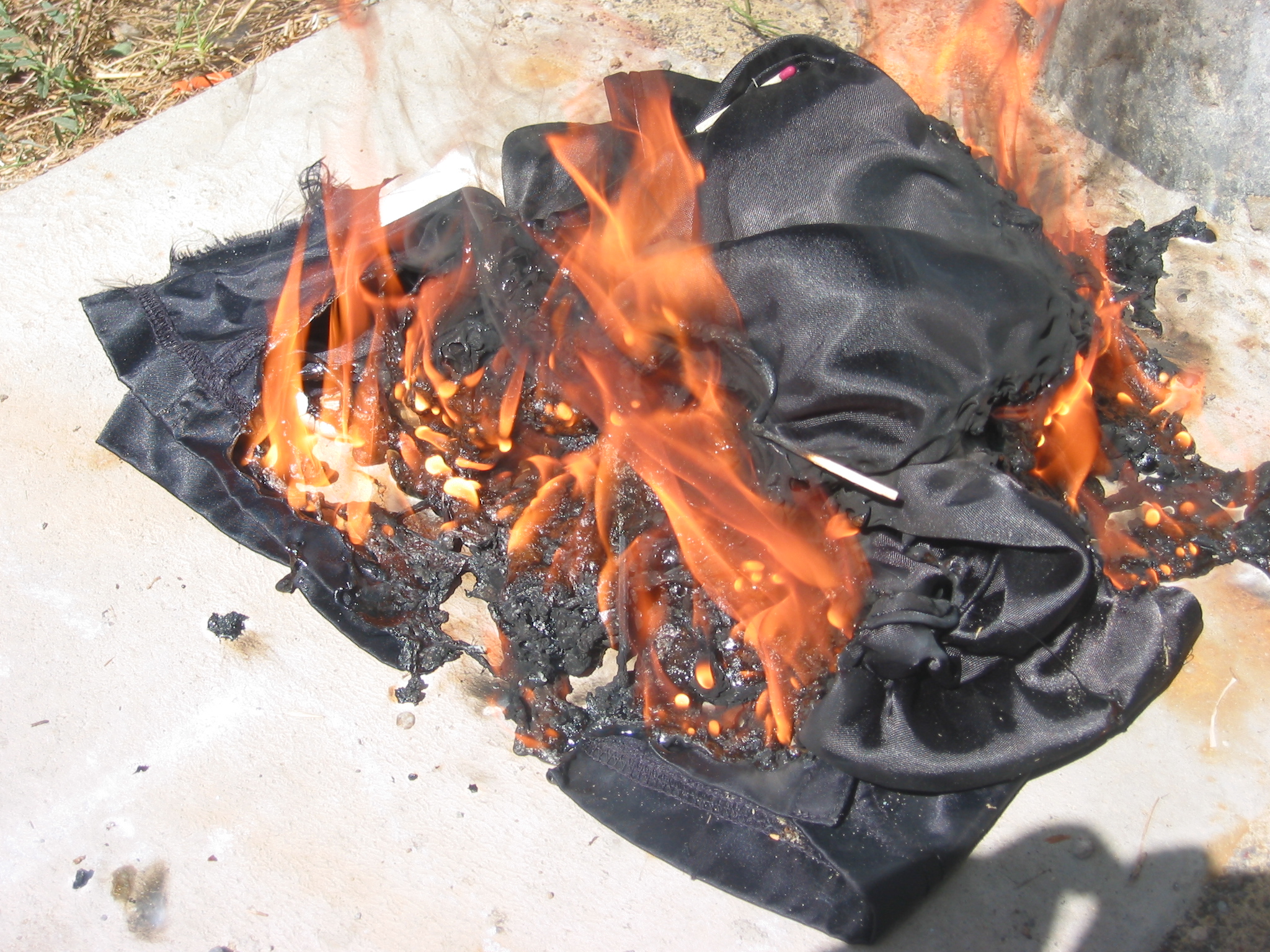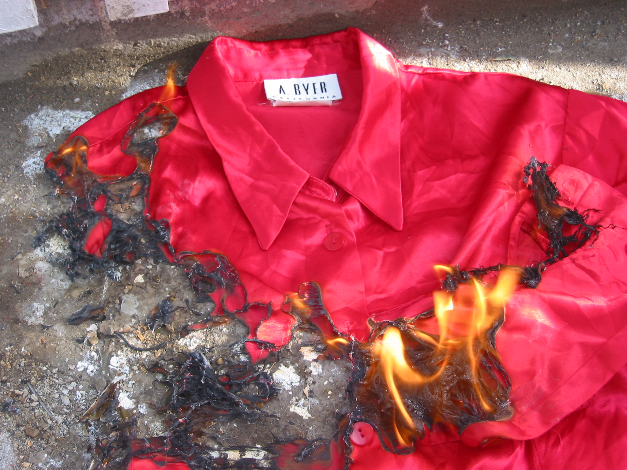 Ich habe da bisher immer nur Satin Blusen verbrennen können, wenn Sie beim rumspielen kaputt gegangen sind. Die unten ist beim nächtlichen rumspielen im Pool (da haben wir noch in wärmeren Gefilden gewohnt) kaputtgegangen....die Satin Hose die meine Frau anhatte übrigens auch (auch verbrannt...)