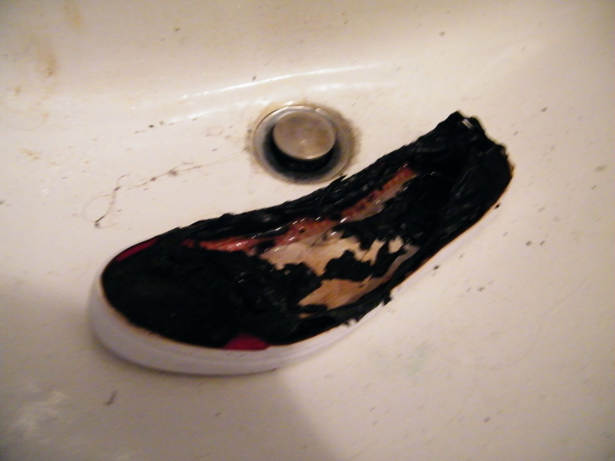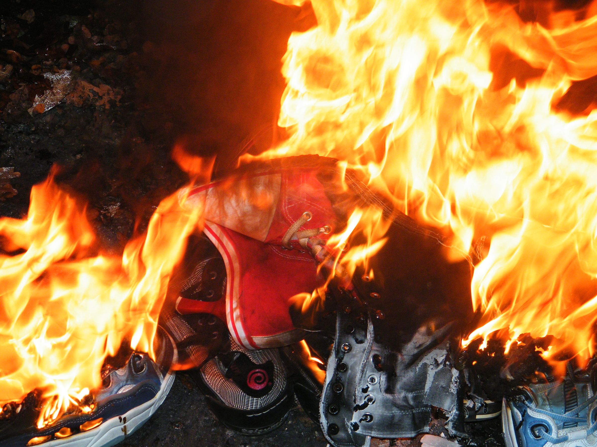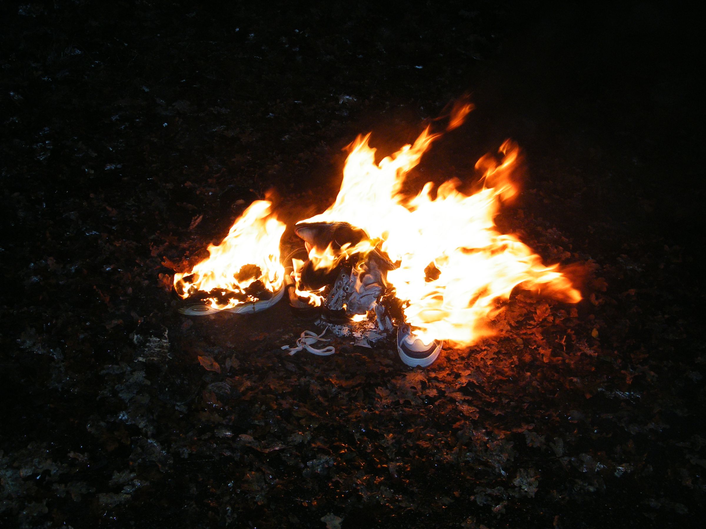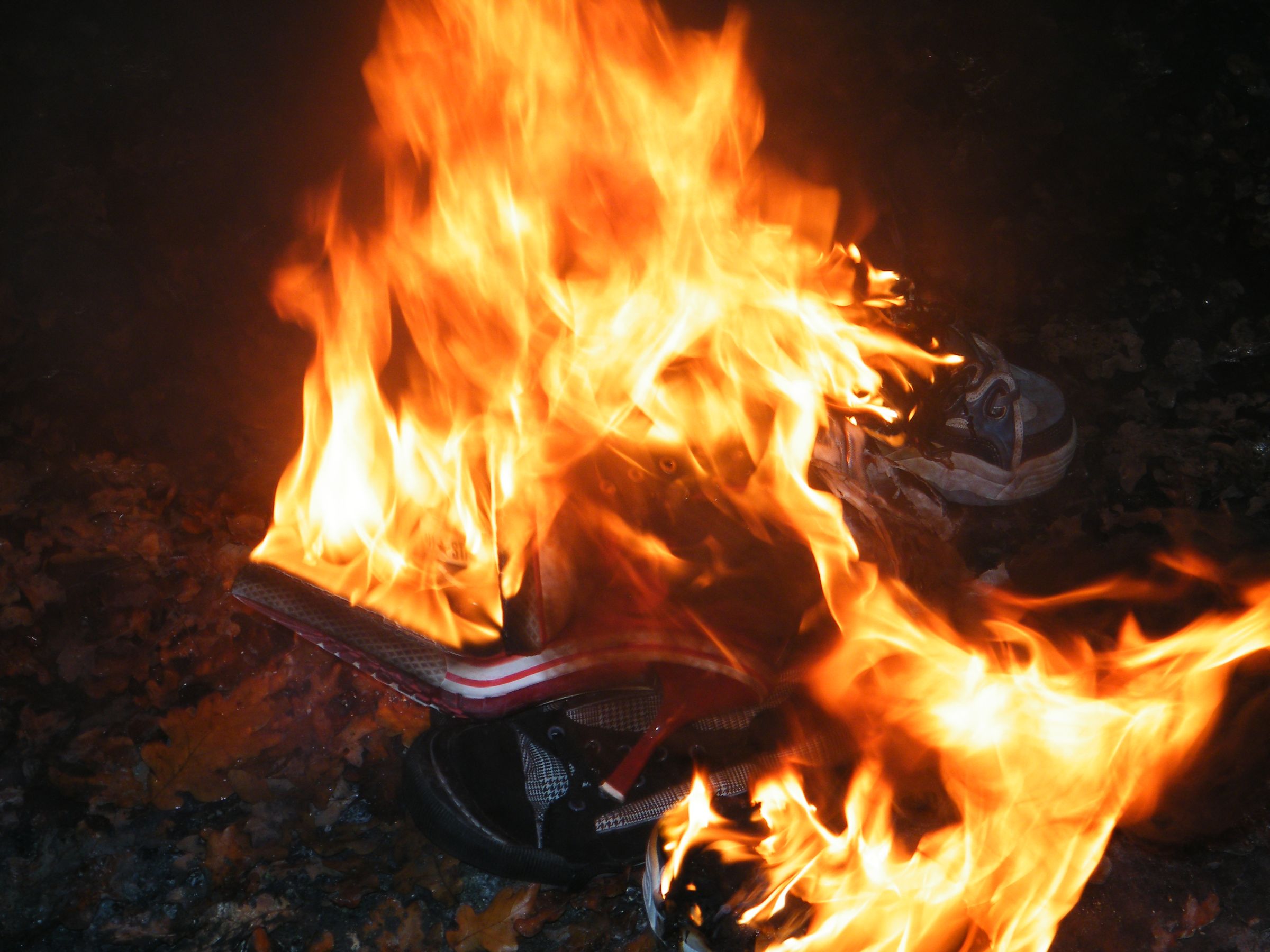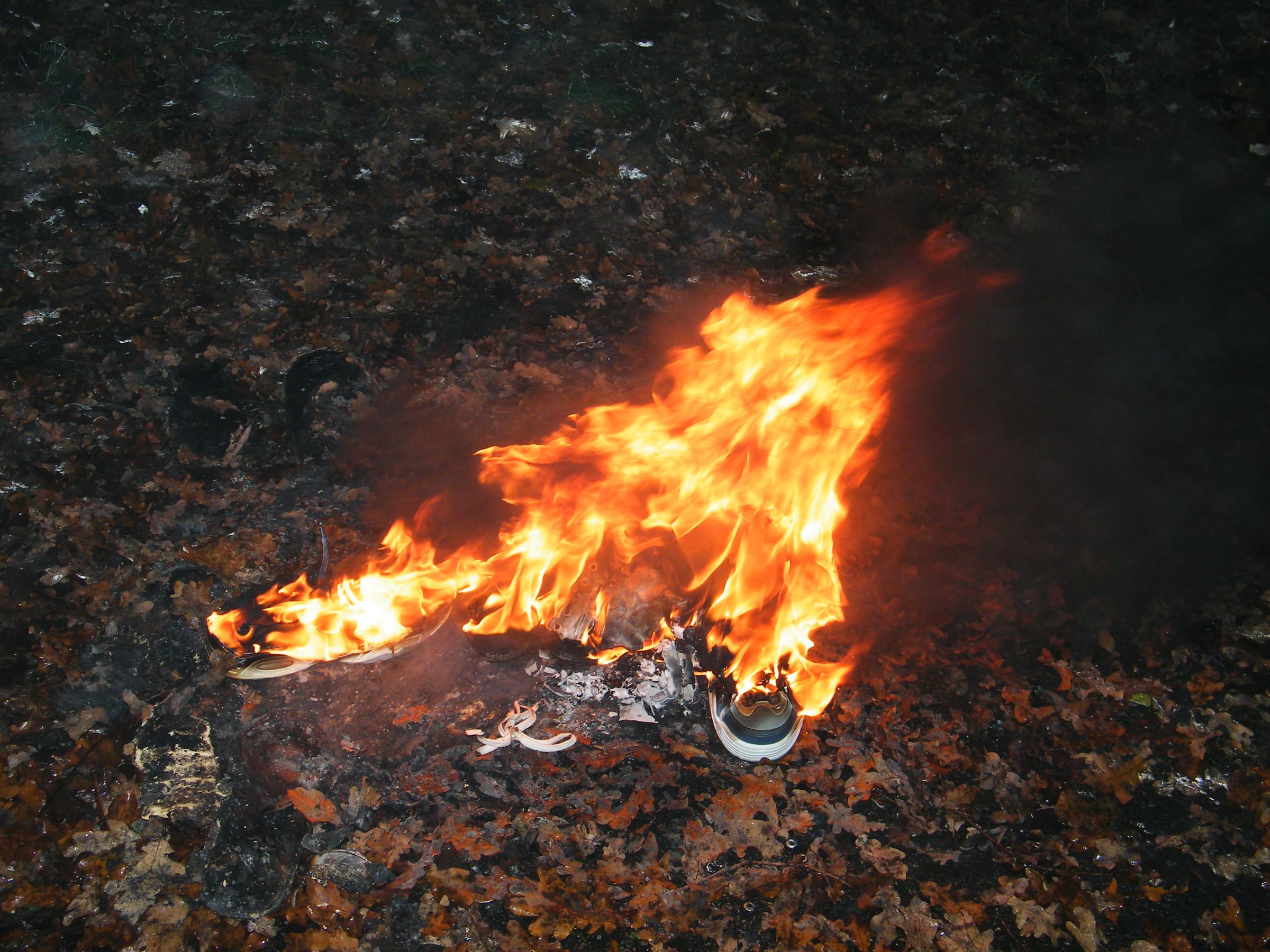 Daraus gelernt, fand' der nächste Videodreh - und alle, die noch folgen sollten - im heimischen Badezimmer aufgrund der vorhandenen (Rauch-)Abzugsanlage (fragt nicht, wofür die da ist!) statt. Ich frage mich, warum ich da nicht gleich drauf gekommen bin. Aber ich sollte lernen, dass Adidas' Superstars zum einen ungern brennen wollen und zum anderen, wenn sie denn mal aus eigener Kraft Feuer gefangen haben, fürchterliche Gerüche absondern. Inzwischen verwendet man zwar Brandbeschleuniger und andere Utensilien, weil man daraus gelernt hat, doch muss ich zugeben: Die Superstars waren nicht die schlimmsten Fußbekleidungsstücke in dieser Hinsicht!