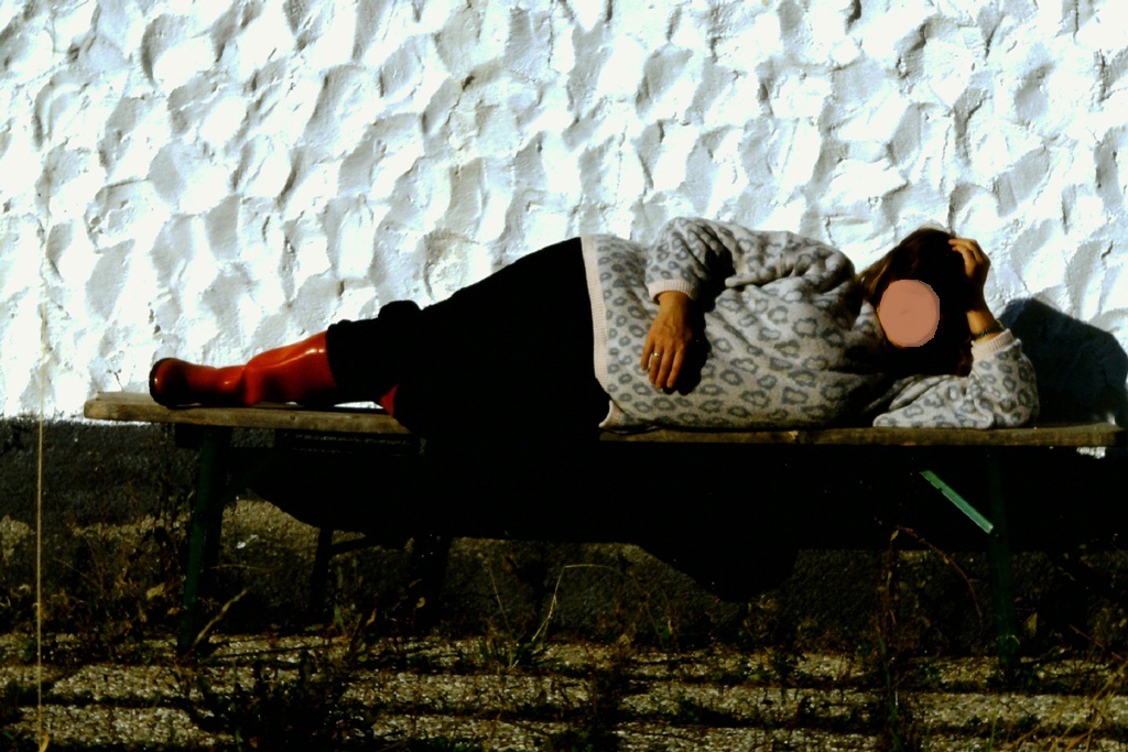 Die Qualität ist zwar schlecht doch es sind von Dias eingescannte alte Bilder. Hier Bilder von ihren ersten hohen rot glänzenden Gummistiefeln. Die Stiefel habe ich nach einem Umzug zerschnitzelt sodaß neue hermusten.