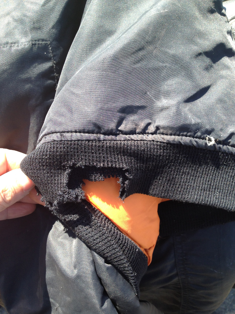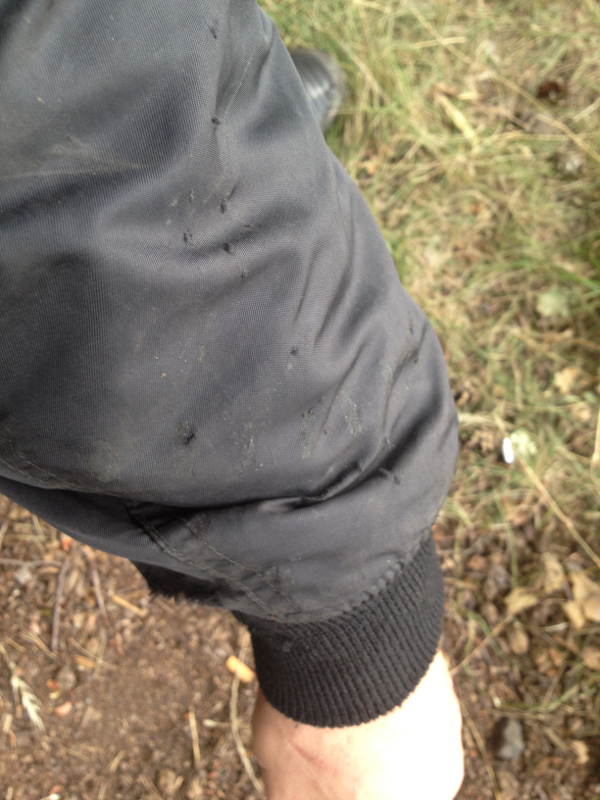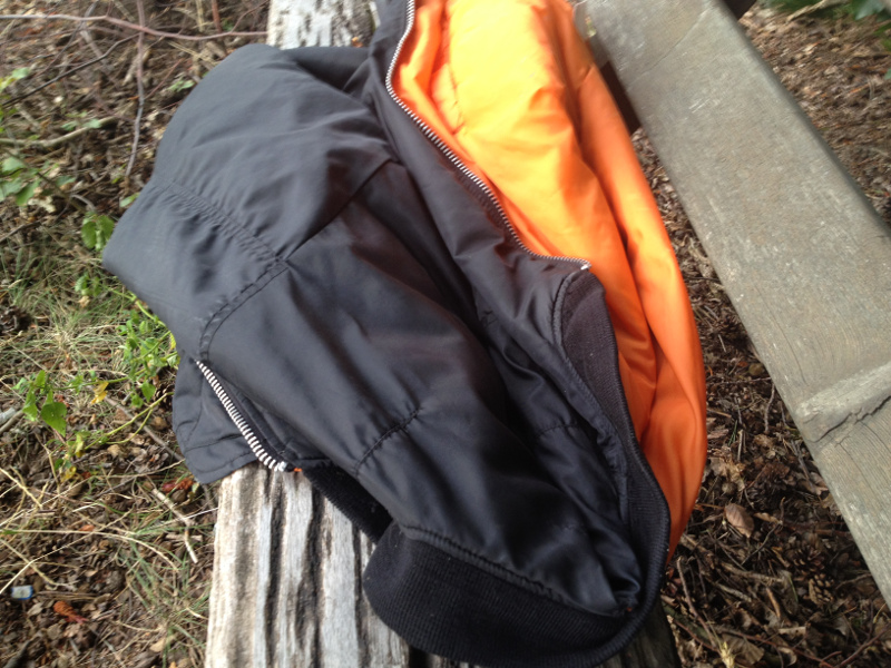 Das orange innenfutter von der verdreckten Bomberjacke hab ich schon mal aufgerissen. Die Nähte haben nur so gekracht...