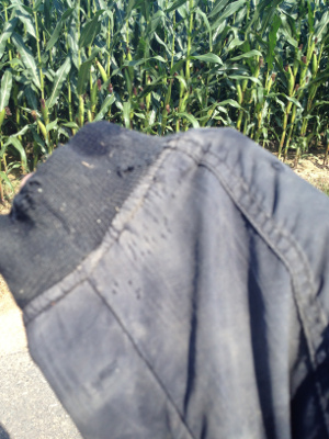 Ich habe die schwarze Bomberjacke bis gestern "bearbeitet".Sie ist dadurch ziemlich bretthart geworden.