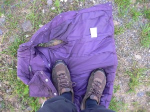 Ich hing sie kurzer Hand an mein Auto und fuhr ein paar Meter mit ihr. Das tat ihr schon ein aar Schäden hinzufügen. Besonders die Reisverschlüsse und Druckknöpfe litten sehr.