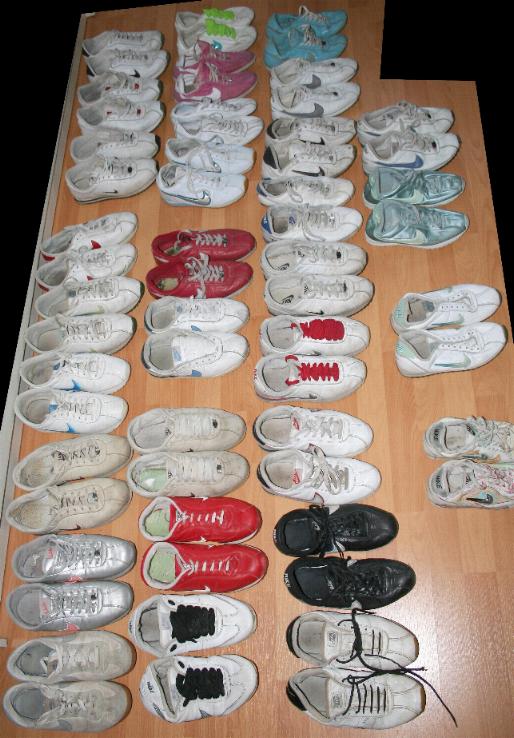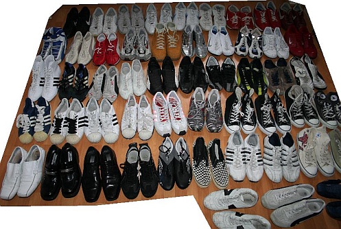 die auf den Bildern hab ich größtenteils noch. Alleine einen ganzen Karton nur mit Nike Cortez, und ganz viele andere *gg*,die ich nicht übers Herz gebracht hab in den Schuhhimmel zu befördern. Die meisten waren noname-Dinger, Stiefel, Pumps, Ballerinas ... bei ca. 400 Paaren kommt echt eine heftige Menge zusammen.