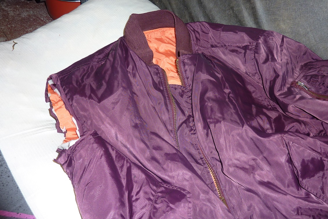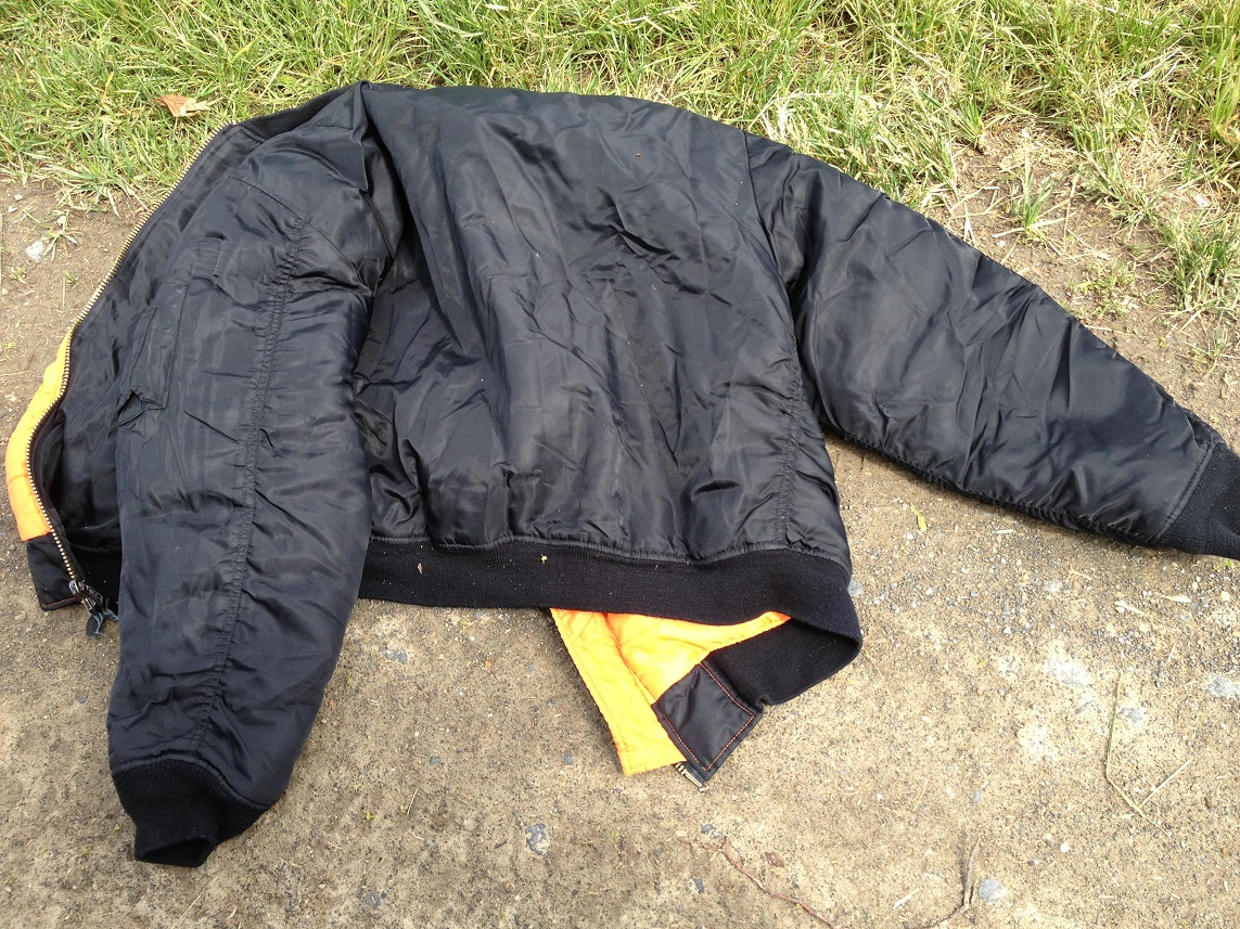 Hab die rote Bomberjacke wiedergefunden, sie lag nur etwa 50 meter weiter weg hinter einem holzstapel. ich hab sie mit nach hause genommen. leider ist der reisverschluß kaputt deswegen wird sie zerfetzt