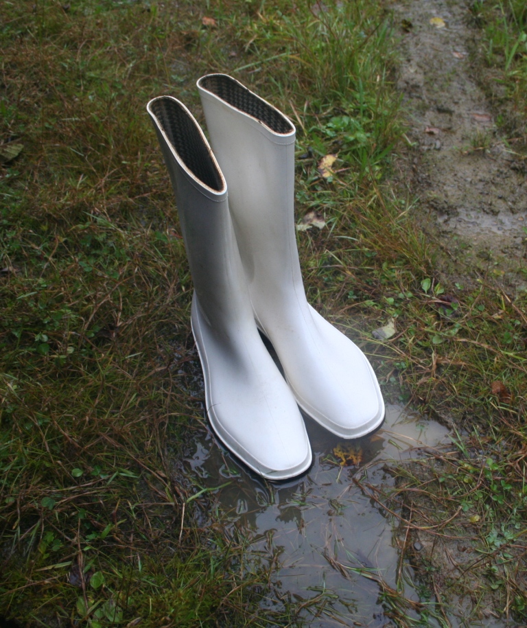Hier nun ein paar Bilder der weißen Phönix Gummistiefel mit schwarzer Sohle, noch dicht und relativ weich. Hoffe das bleibt auch noch eine Zeitlang so.