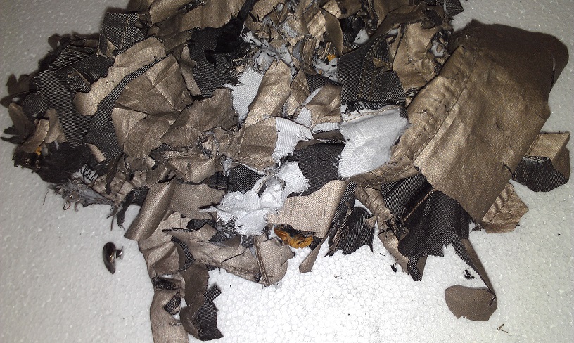 Folgendes Bild zeigt was in etwa von zwei Lackröcken übrig bleibt. Wenn man gut hinschaut erkennt man auch einen Teil eines Reissverschlusses: