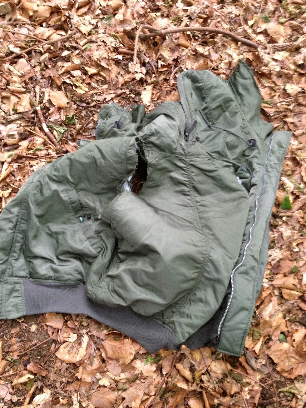 Noch kann man die Jacke anziehen weil sie nur innen drin zerrisen ist. von aussen siht man nix