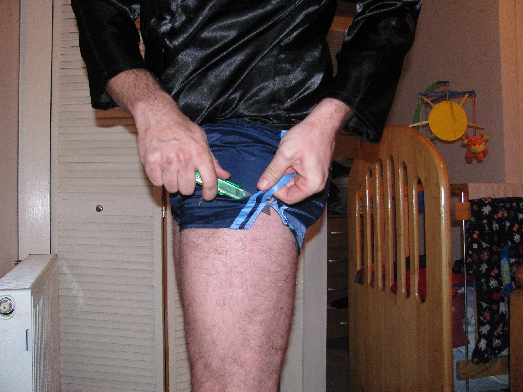 (Hier hatte ich übrigens vorher eine knallenge weisse Satin Hose an, die ich mir auch in Fetzen vom Leib geschnitten habe. Normalerweise mache ich das nicht alleine, aber ich hatte echt mal Lust drauf....)