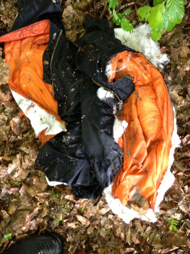 Hab gestern nach der verrottenden Bomberjacke gesehen. Liegt noch im Wald aber erwa 10 meter weg von der stelle wo sie das letze mal war. Möchte mal wissen wer damit rumgespielt hat