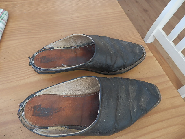 Die Dinger sind nicht nur durchlöchert wie schweizer Käse, sondern riechen auch so. Eigentlich sollte ich sie sofort verbrennen und mich wieder den alten Latschen meiner Frau widmen (da gibt es einige in der Warteschleife