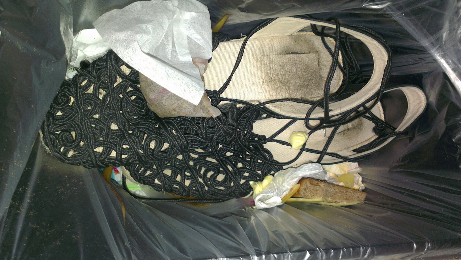 Keilsandalen in den Küchenmüll