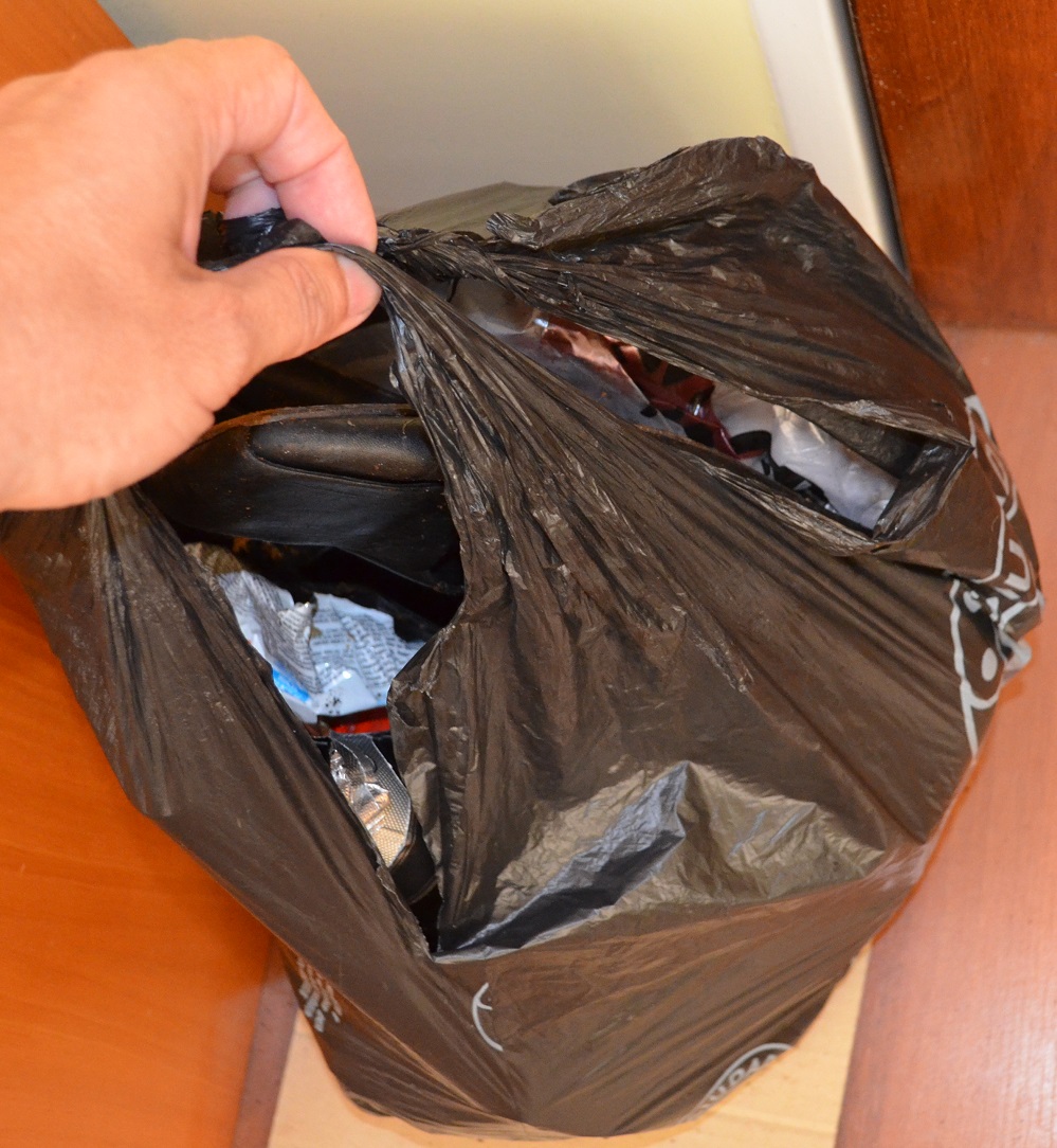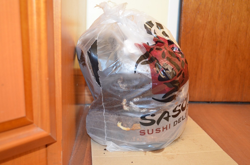Dann weiter zugemüllt und - da schon im geplatzten Beutel - zur Sicherheit nochmals einer drumrum.