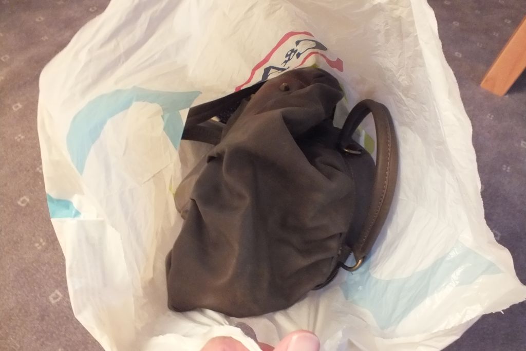 Rucksack auf - Ekelmüll rein- zu spät