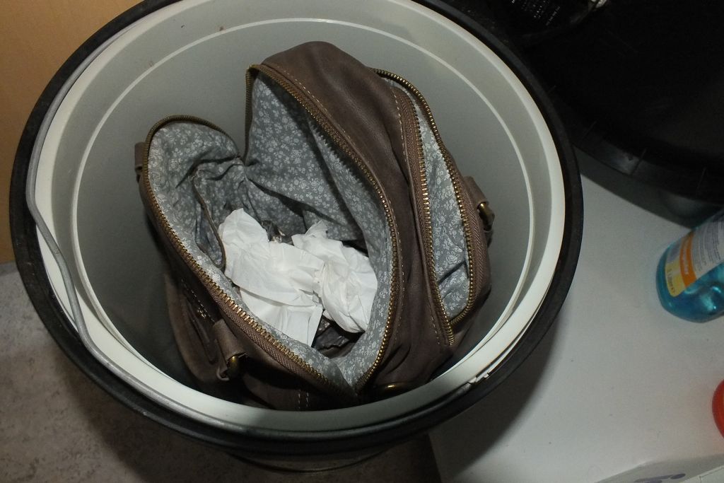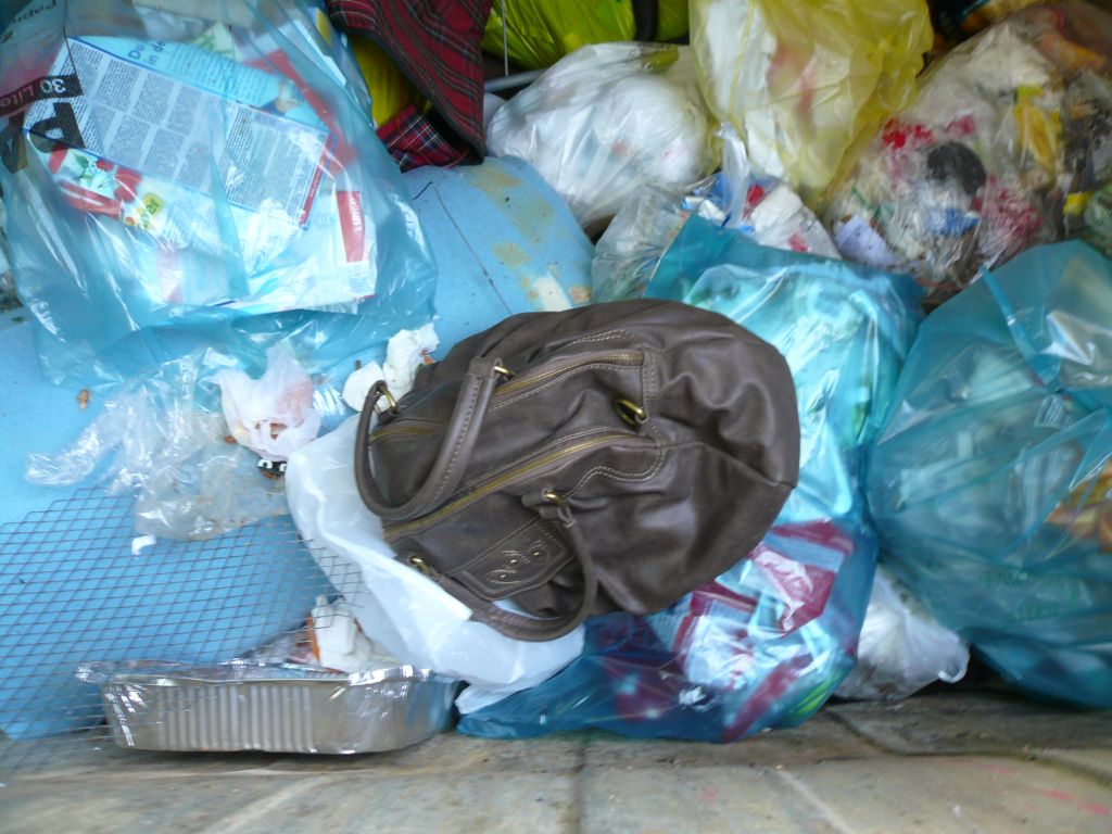 Deshalb finde ich auch ausrangierte (Girly-)Handtaschen sehr geil. Besonders dann wenn sie als Mülleimer schlussendlich missbraucht, gebraucht, verbraucht werden. Dies gilt auch für Rucksäcke und Sporttaschen.