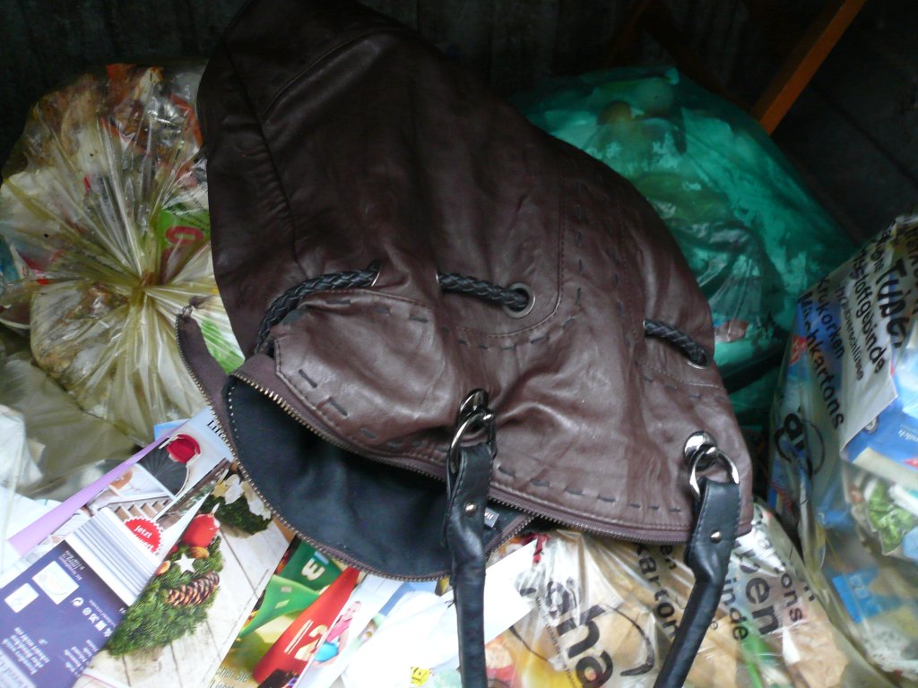neulich habe ich einen tollen Fund im Müll gemacht. Dabei war auch eine braune Handtasche. Sie steckte in einer Plastiktüte.