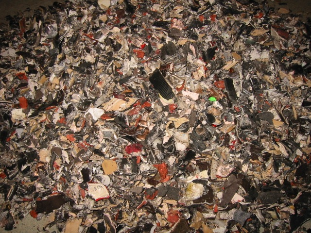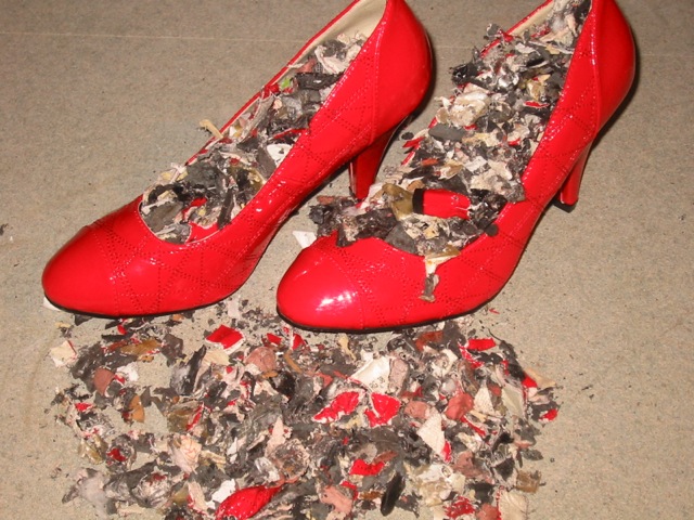 Pumps, Strumpfhosen, Sneakers zum Schreddern.