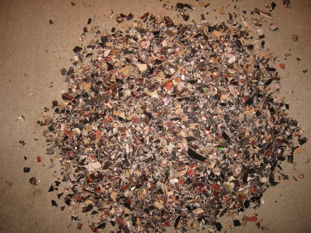 Ich habe leider während der letzten Session keine Bilder gemacht, aber ich habe ein paar vorher-nachher Bilder von einer früheren Häcksleraktion mit dem gleichen Schredder. Ich hoffe, das macht Lust auf mehr....