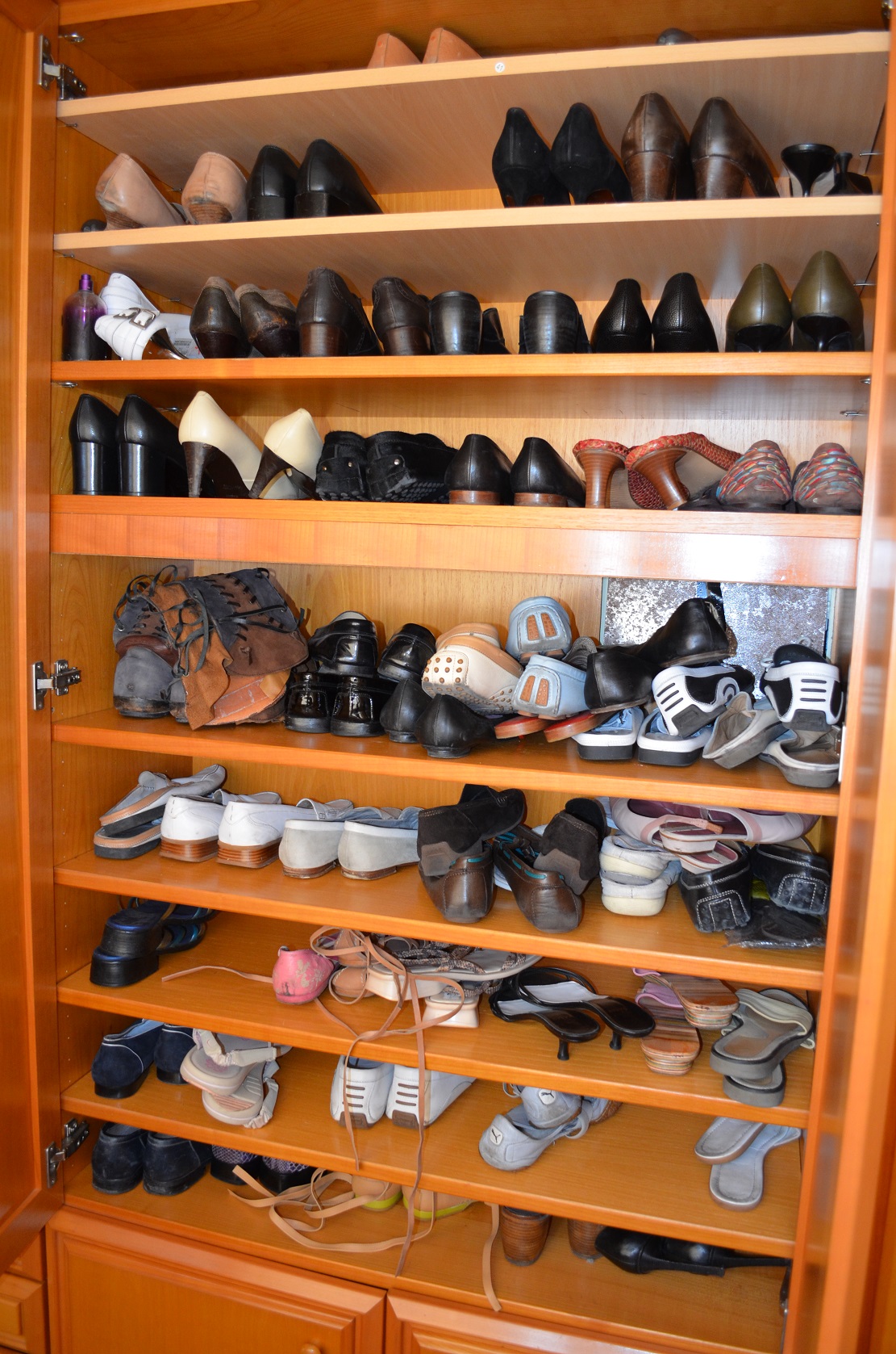 Schon war die Plastiktüte voll und landete neben der Türe - dieses mal sollten die Schuhe nicht an den Füssen meiner Frau über die Schwelle schreiten . . .