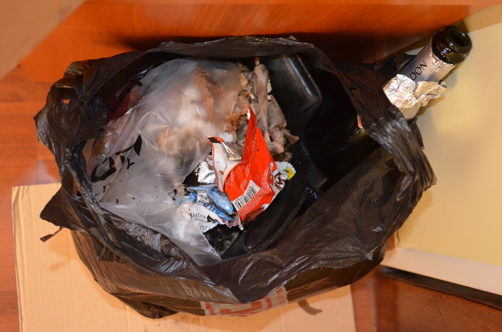Dann weiter zugemüllt und - da schon im geplatzten Beutel - zur Sicherheit nochmals einer drumrum.