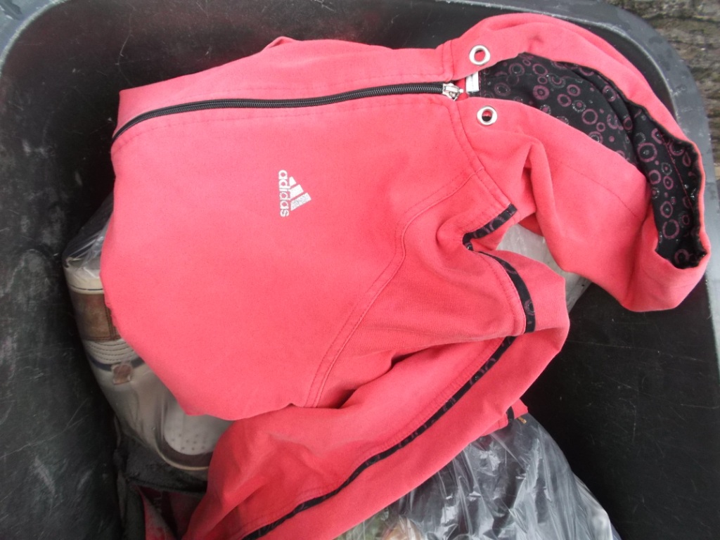 So schnell kanns gehen: Martina hat noch ihren alten geilen Kapuzensweater in die Mülltonne geworfen. :o