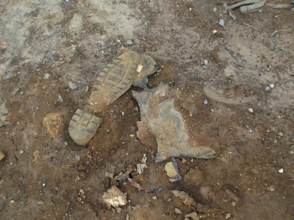Des Rätsels Lösung: Vor einigen Wochen oder Monaten hat eine Frau ihren BH mit den dazugehörigen BH-Polstern in den Müll geworfen. Vermutlich kam er zum Hygieneabfall oder gleich in den Küchenmülleimer. Gepresst bei dessen Müllabfuhr platzte wohl der Müllbeutel auf und beim Verkippen auf der Mülldeponie wehte der Wind oben auf dem Müllberg das leichte BH-Polster herunter, welches in einer Pfütze landete. Vom Regenwasser und Schlamm aufgequollen, muss man schon zweimal hinsehen, was da so "idyllisch" einem zu Füßen liegt.