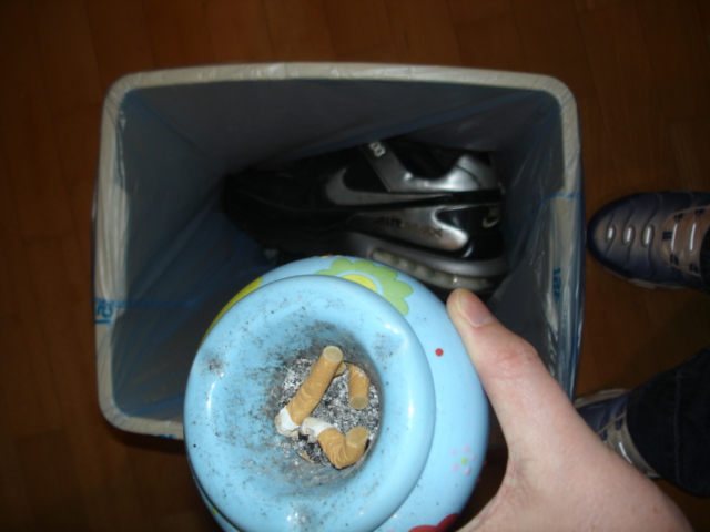 Dann als erstes Mal die ganzen alten Kippen drauf.