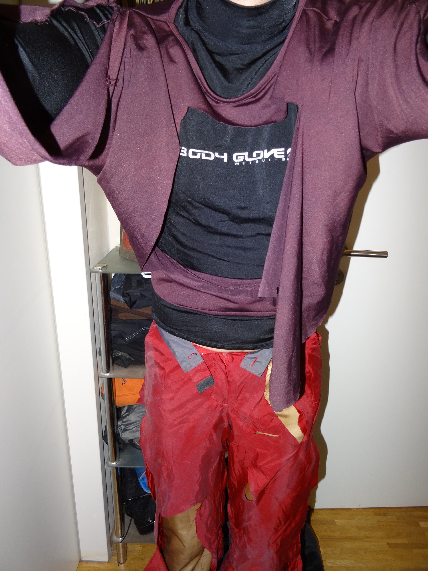 Re: alte rote Nylonhose, Lycrashirt und polyester shirt