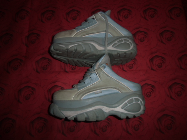 Noch ein Paar Buffalo Plateau Clogs die von Ihrer Trägerin lange barfuss getragen wurden. die Schuhe sind Hellblau und haben Gr. 39. Starke Tragespuren und toller duft. Für 25€ zu haben.