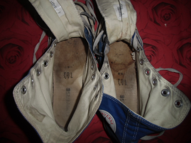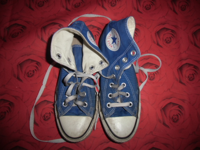 Fertige blaue Girly Chucks in Gr. 38. Innen total versifft und daher auch echt "dufte". Die kamen noch sehr feucht bei mir an