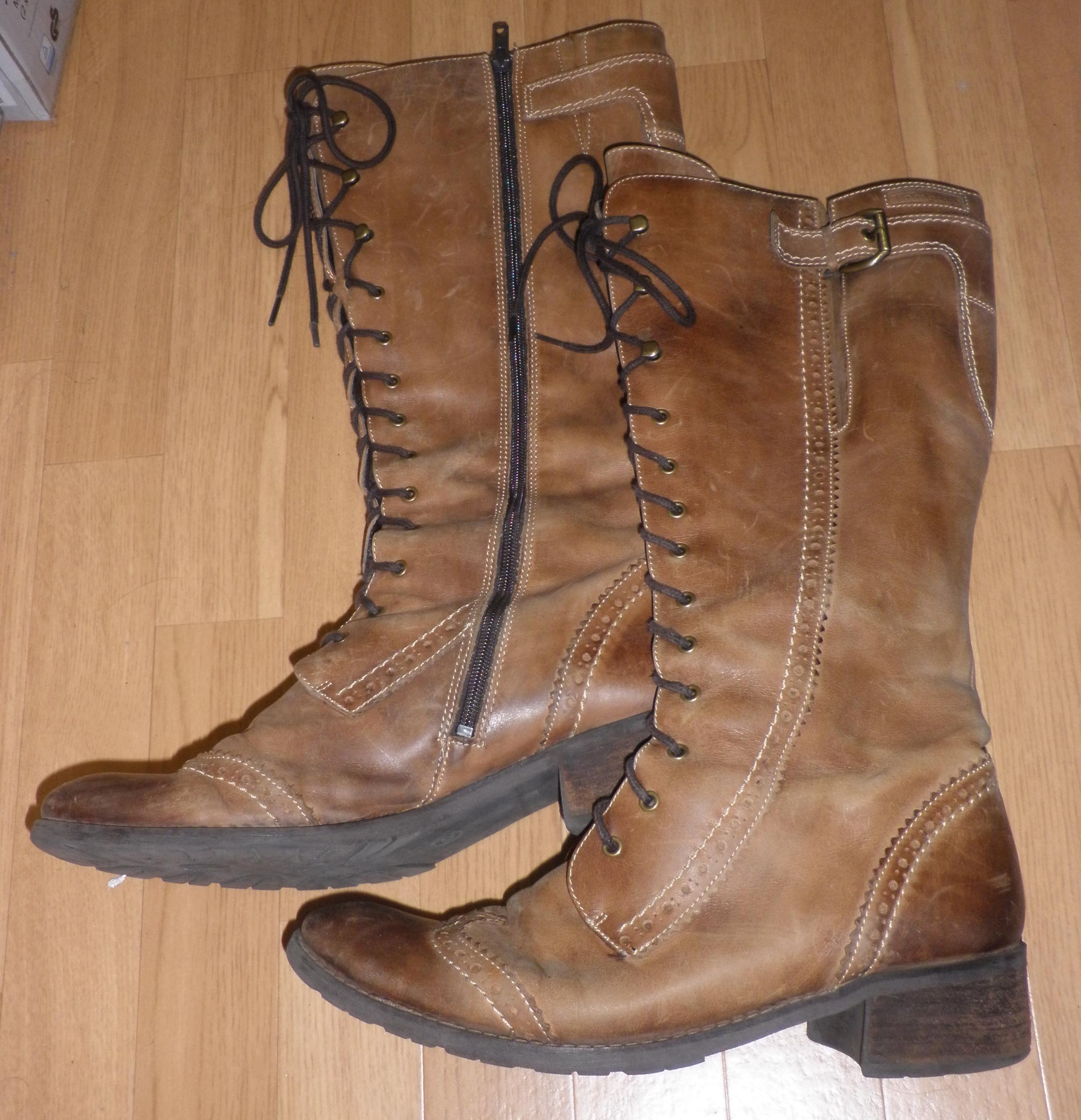 ich konnte neue "alte" Stiefel von Tamaris ergattern. Wie auf den Bildern zu sehen ist, hat die Sohle schon einiges erlebt. Auch die Absätze sind schon etwas abgelaufen.
