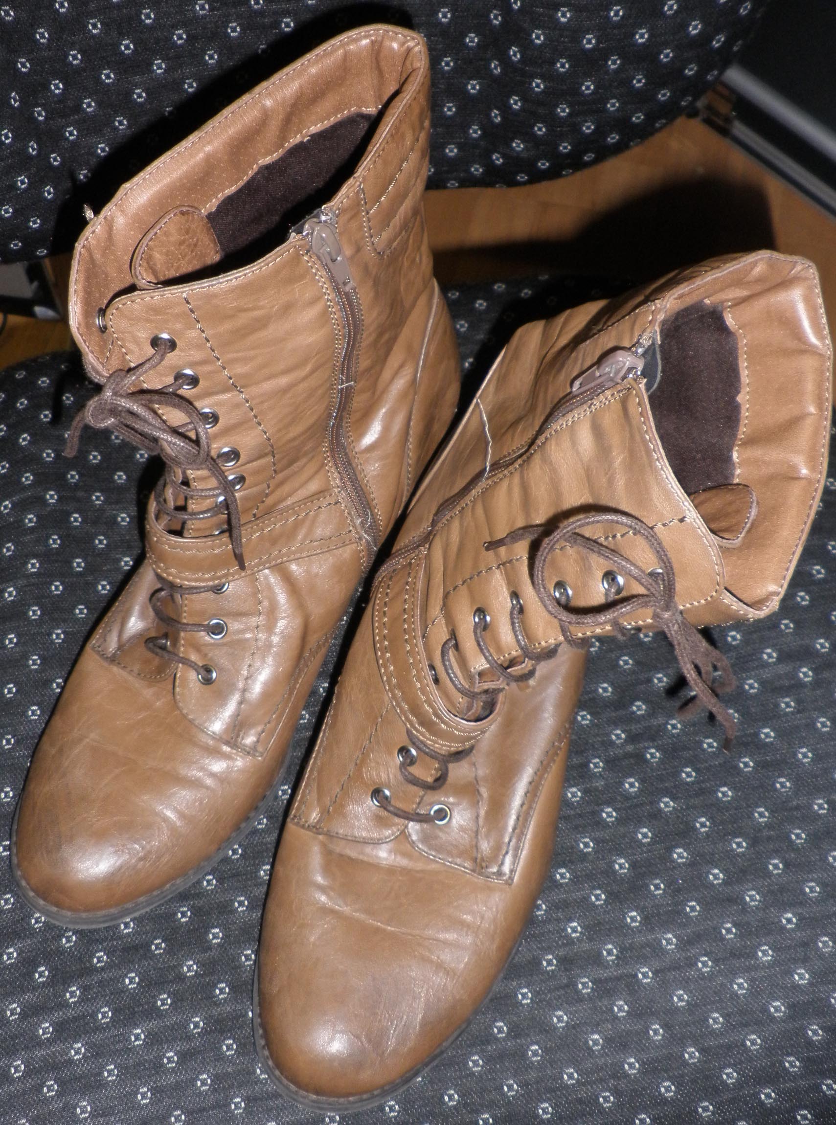 wie viele andere hier auch (vermute ich zumindest), habe ich über ein Auktionshaus braune Stiefeletten von Graceland Größe 44!! ersteigert. Ermutigt durch einen anderen Beitrag hier im Forum "...einfach bei den Verkäuferinnen mal nachfragen..." habe auch ich das mal versucht. Ich hatte nach nicht mehr tragbaren Schuhen (Stiefel, Pumps, etc) gefragt. Leider bekam ich keine Antwort, doch dann war im Paket neben den Stiefeletten auch ein Paar Pumps Gianni Gregori in weiß Größe 43.