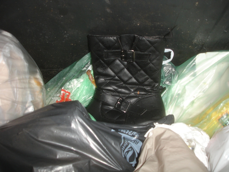 Wer weiß, vielleicht haben sich schon wieder "neue" Schuhe im Müllcontainer "eingefunden".