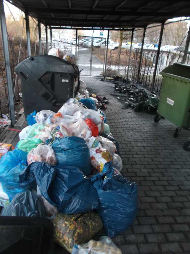 warum auch immer, aber hier wurden bei vollem Wohnbetrieb die Müllcontainer abgezogen. Diese Anblicke boten sich daher an einem der vergangenen Abende: