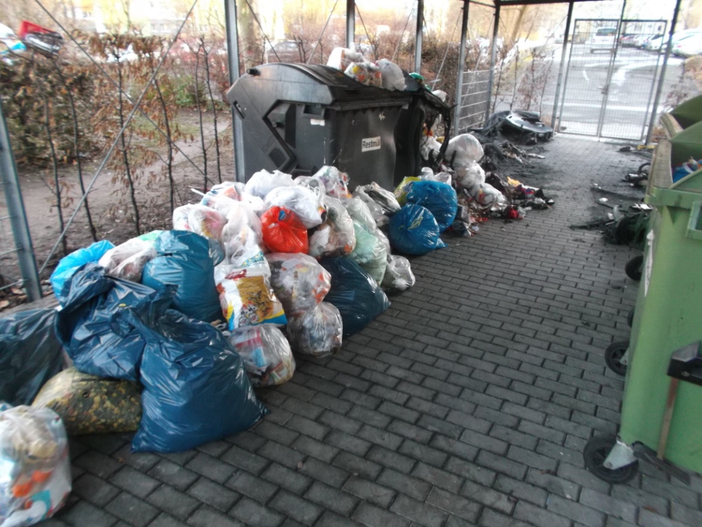 Schon wieder "frischer" Müll in dem "angebrannten" Müllcontainer-Standplatz.