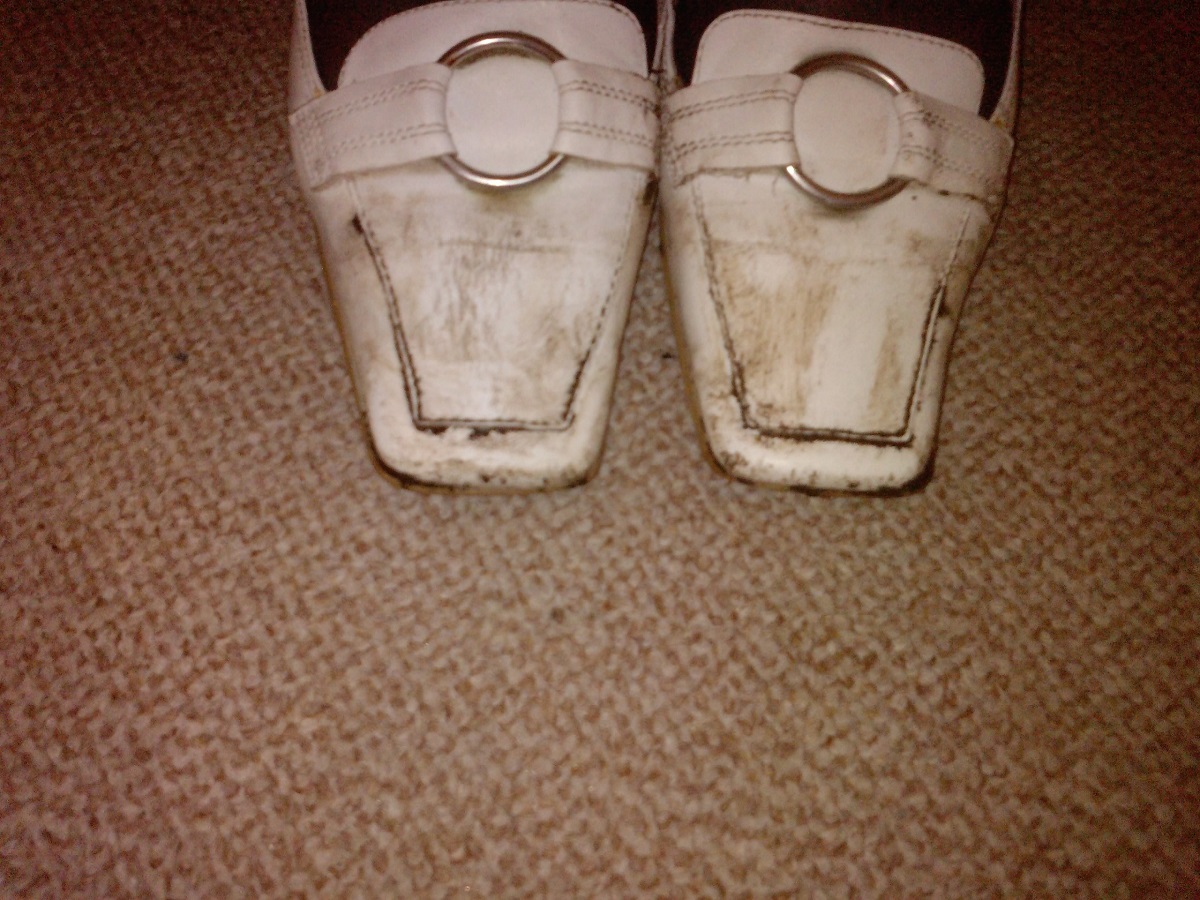 Völlig fertig und am Ende, diese armen süßen Schuhe. Erst der schwere Schulaltag, dann im Büro und dann im Garten. Diese Schuhe können echt Geschichten erzählen.