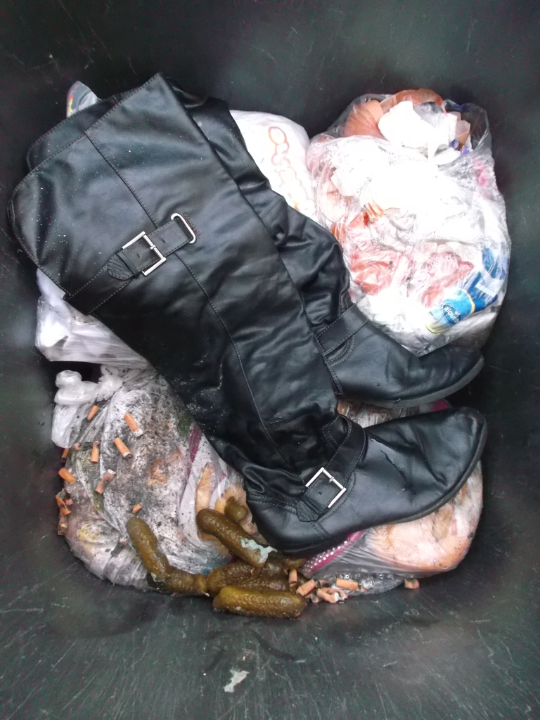 mein Adrenalinspiegel stieg immer mehr, weil ich nun recht fix den Haufen Müllschuhe von Jessica fotografieren und diskret retten musste und jederzeit die Müllmänner vor unserem Haus stehen konnten.